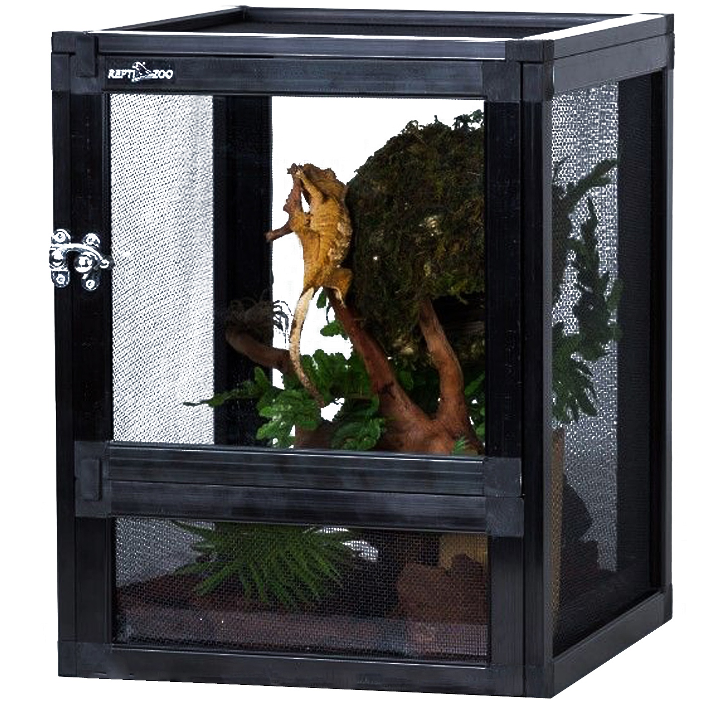 Posiadają szereg udogodnień, sprawdzonych rozwiązań oraz nowatorskich pomysłów, dzięki czemu terraria Repti-Zoo wyróżniają się na tle produktów konkurencji, przede wszystkim estetyką i naturalnym wyglądem oraz trwałością i łatwością obsługi.