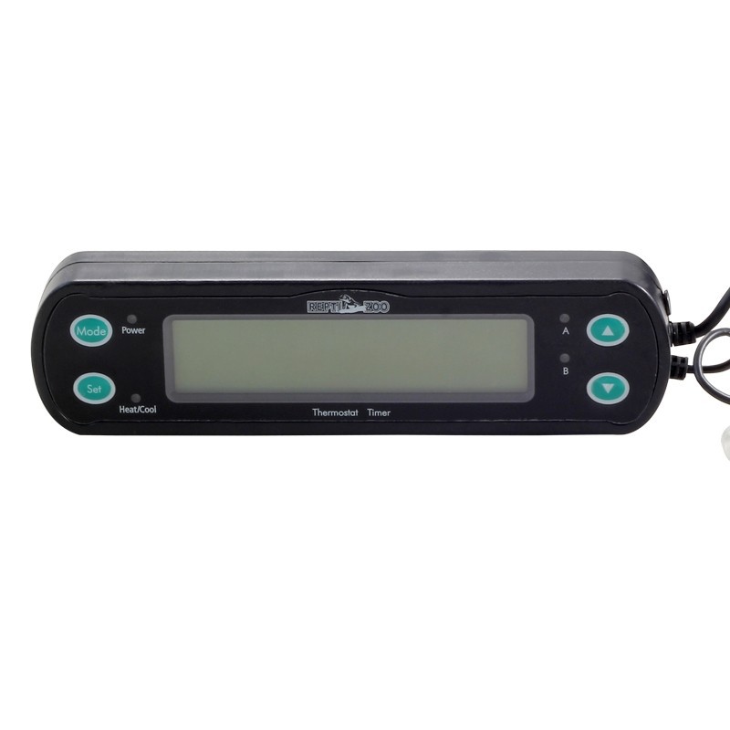 THC10 wyposażony jest w duży czytelny i podświetlany wyświetlacz LCD. Daje się łatwo zaprogramować, oraz zamontować w każdym terrarium, dzięki załączonym do zestawu samoprzylepnym rzepom oraz uchwytowi montażowemu do kontrolera. Pełna kontrola spadku czy wzrostu temperatury sprzyja dobremu samopoczuciu pupila oraz pobudza apetyt, zachowania rozrodcze oraz pozwala wywołać sen zimowy. Urządzenie zapamiętuje ustawienie w przypadku braku prądu.