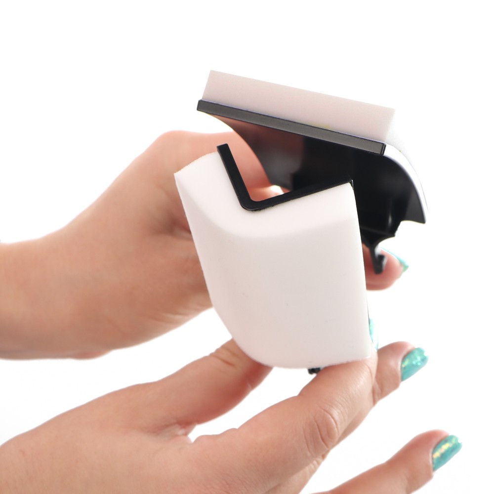 Właściwie to lekko wygięta. Odpowiedni kąt zagięcia i szeroka gąbka umożliwią Ci dokładne czyszczenie i polerowania szkła