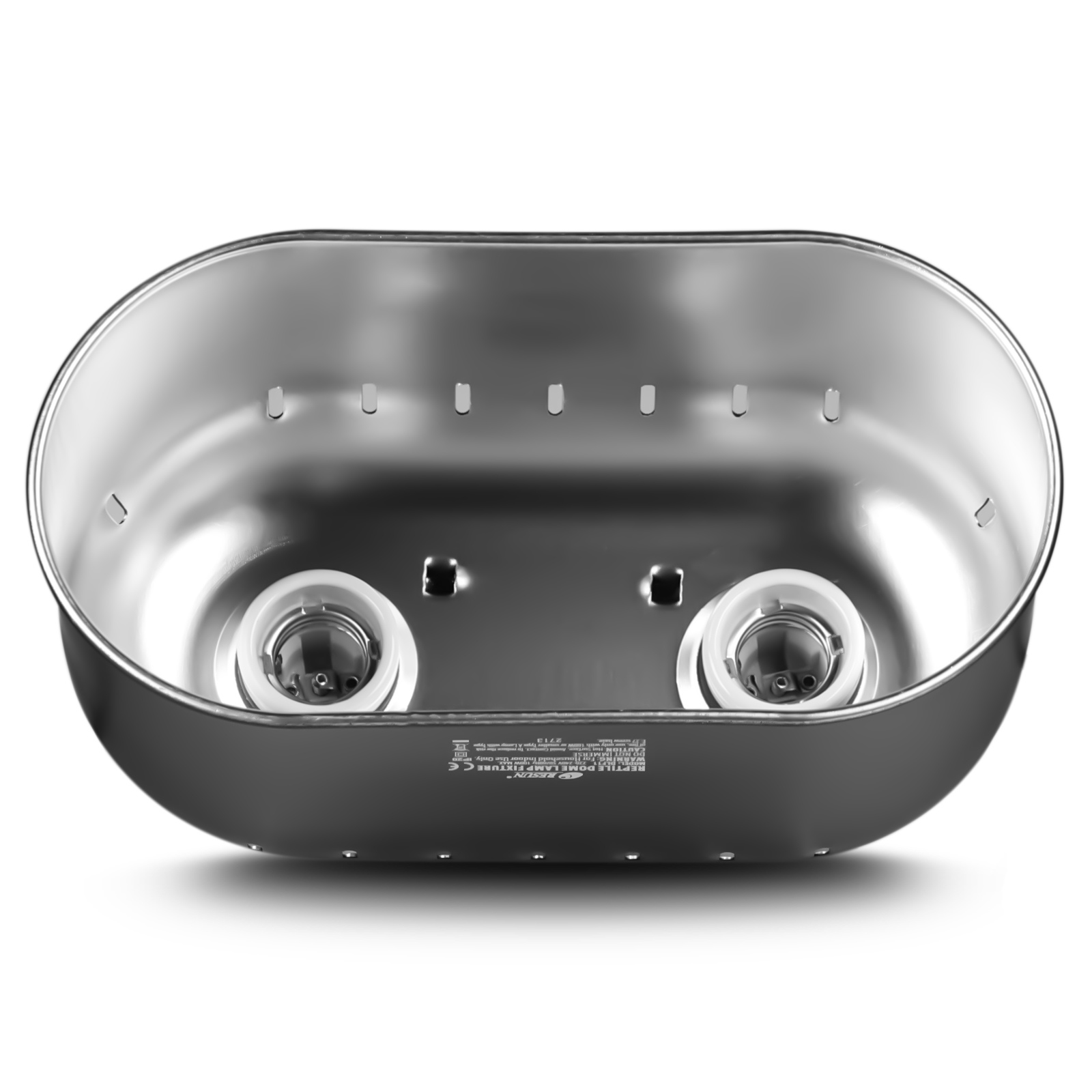 To ważny element. Gruba ceramika ma za zadanie chronić żarówkę grzewczą lub UVB albo emiter przed przegrzaniem się i przepaleniem. Możesz zastosować żarówki o maksymalnej mocy 100W każda (2 x 100W)