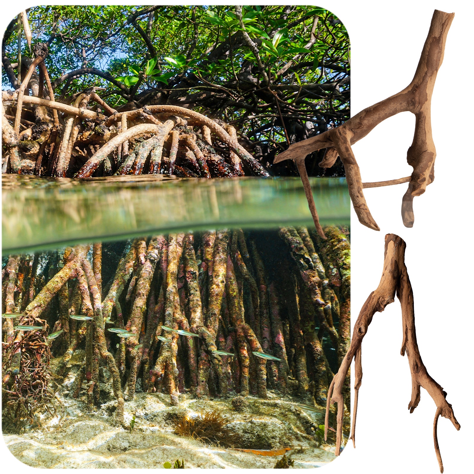 Korzeń Rhizophora, znany jako czerwony mangrowiec, to prawdziwy, naturalny element, który odzwierciedla fascynujący świat tropikalnych wód. Swoim wyjątkowym i unikatowym kształtem sprawia, że jest idealnym dodatkiem do akwariów, terrarium i paludarium.
