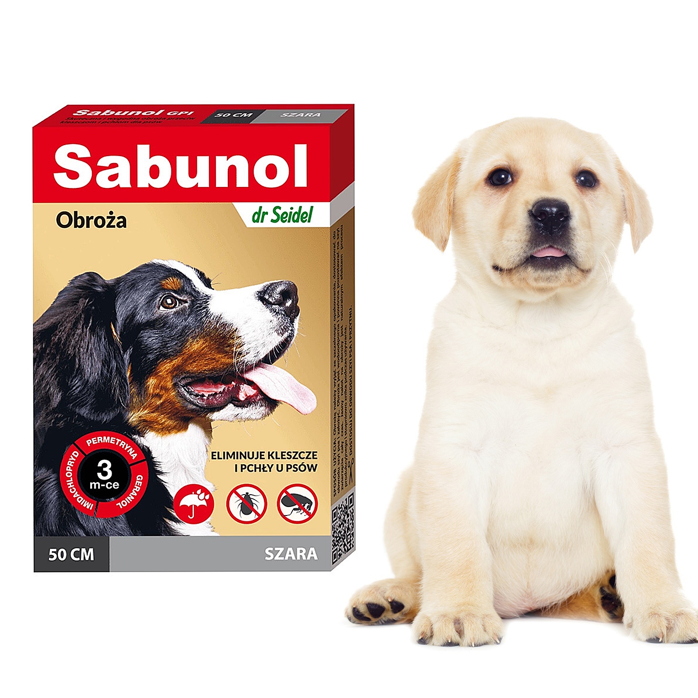 Sabunol GPI to nowoczesna obroża przeciw kleszczom i pchłom dla psów, skuteczna i wygodna w użyciu. Unikatowe połączenie trzech składników: permetryny, imidachloprydu i geraniolu zapewnia skuteczność działania przez 3 miesiące. Badania potwierdzają wysoką tolerancję miejscową i ogólną co sprawia, że obroża jest bezpieczna podczas stosowania. Zwalcza kleszcze i pchły przez 90 dni. W czasie noszenia obroży, substancja czynna uwalania się i rozprzestrzenia na skórze i sierści zwierzęcia, działając na pasożyty zewnętrzne w sposób kontaktowy. Efekty działania obroży są już widoczne po 48 godzinach od jej założenia.
