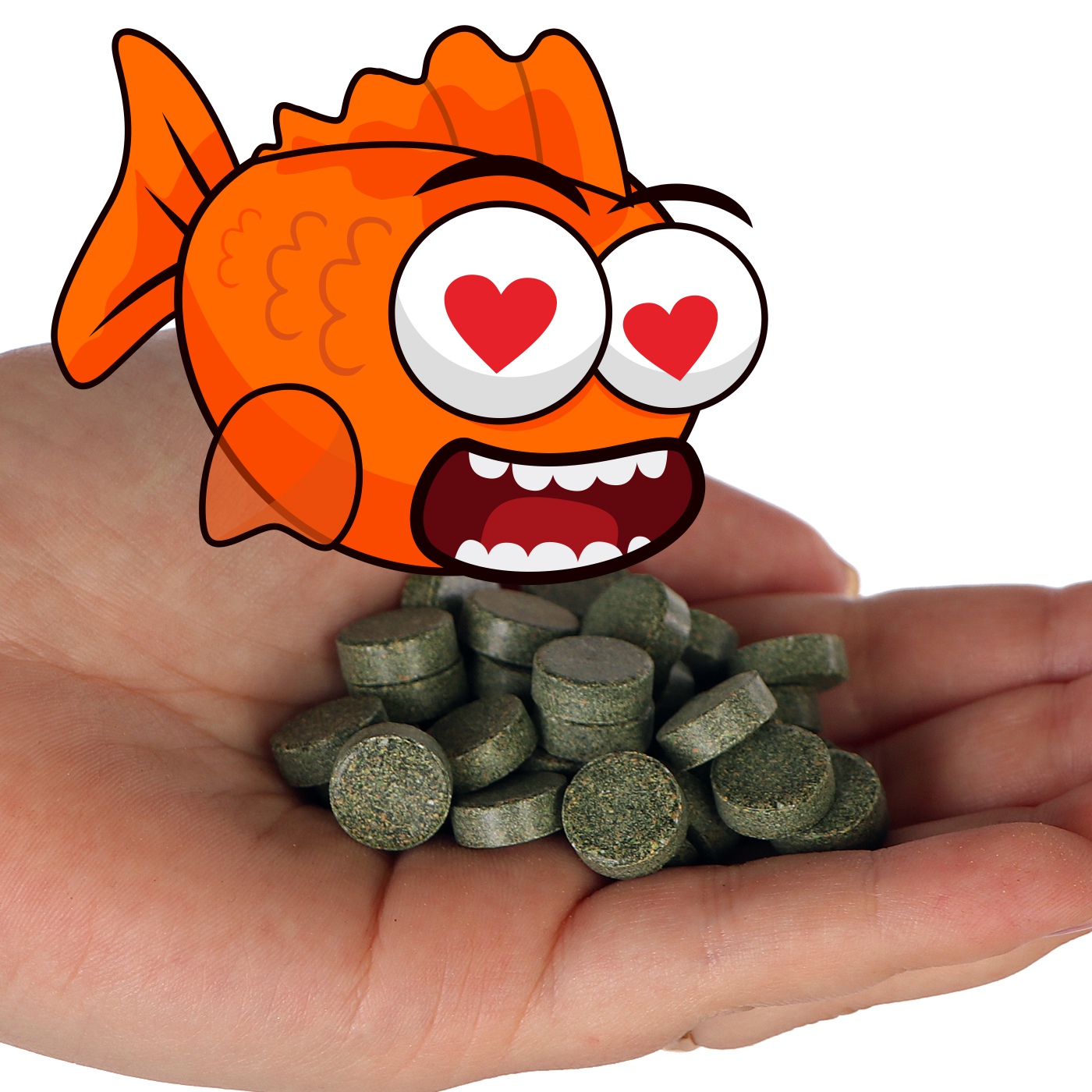 Pokarm w postaci tabletek. Szybko opada na dno. Nie powoduje zmętnienia wody.
