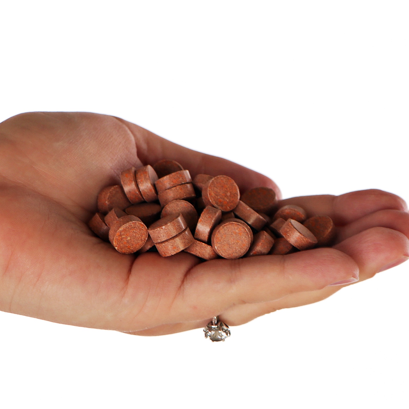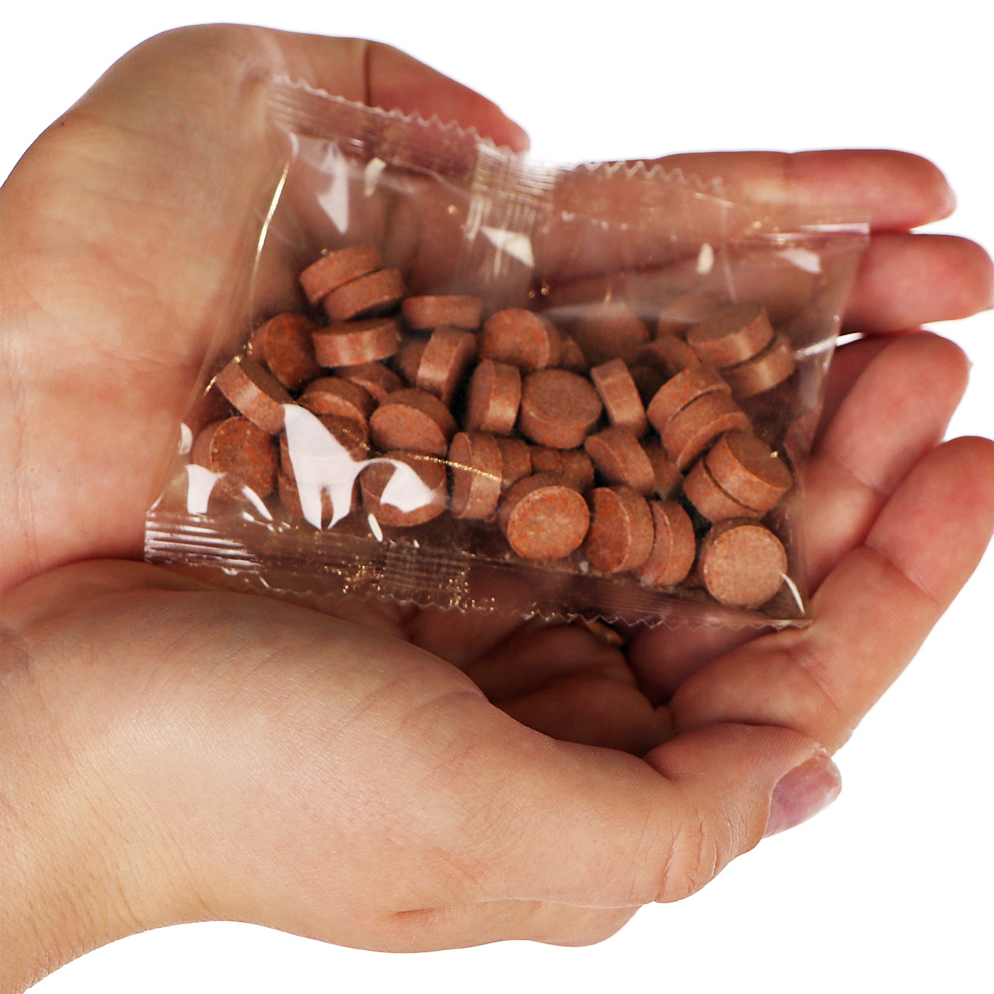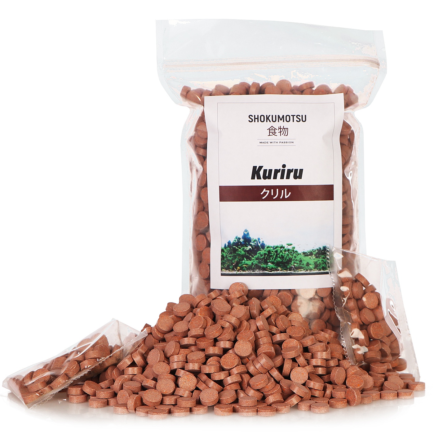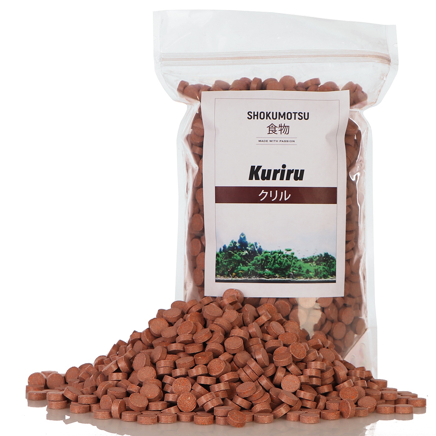 Do produkcji SHOKUMOTSU Kuriru nie wykorzystano mączki rybnej i innych substancji paszowych, które można znaleźć w podobnych 'krylowych' tabletkach.