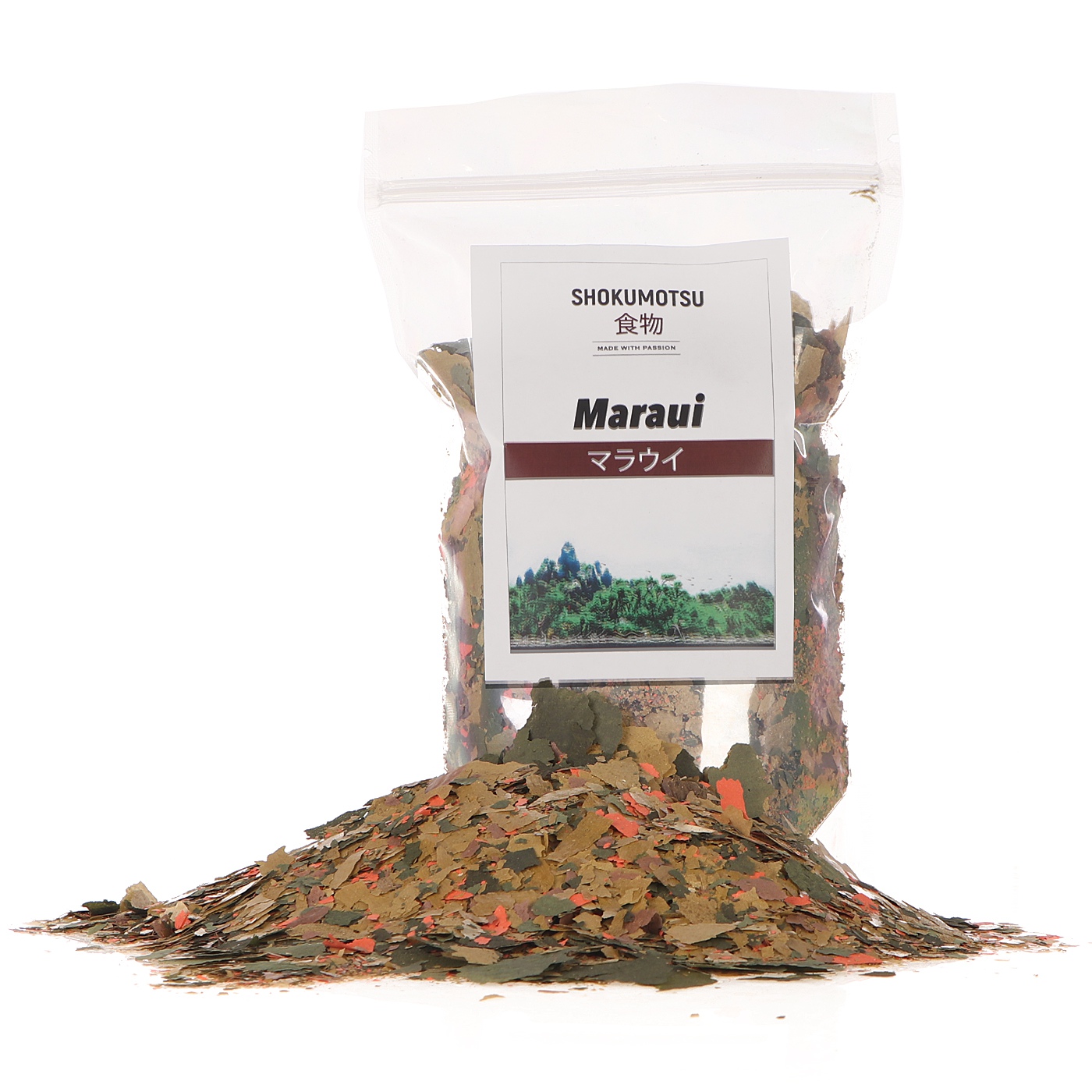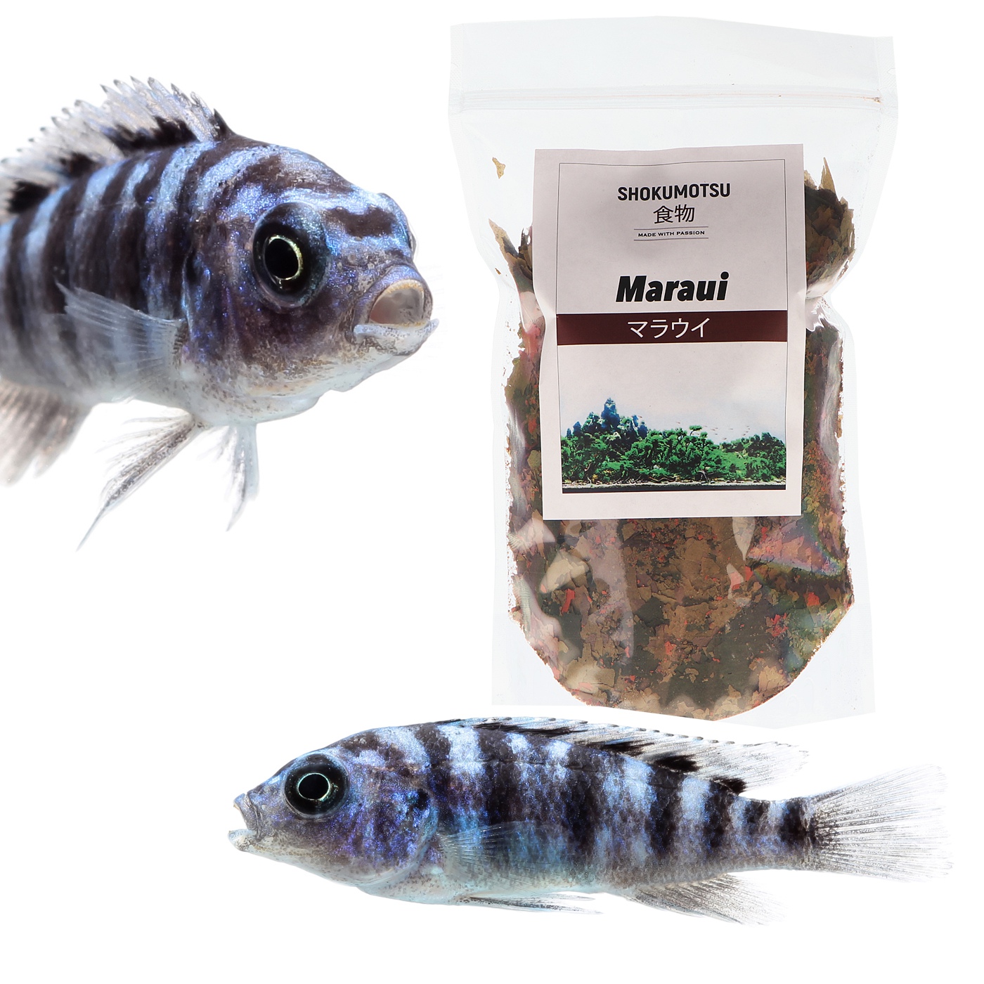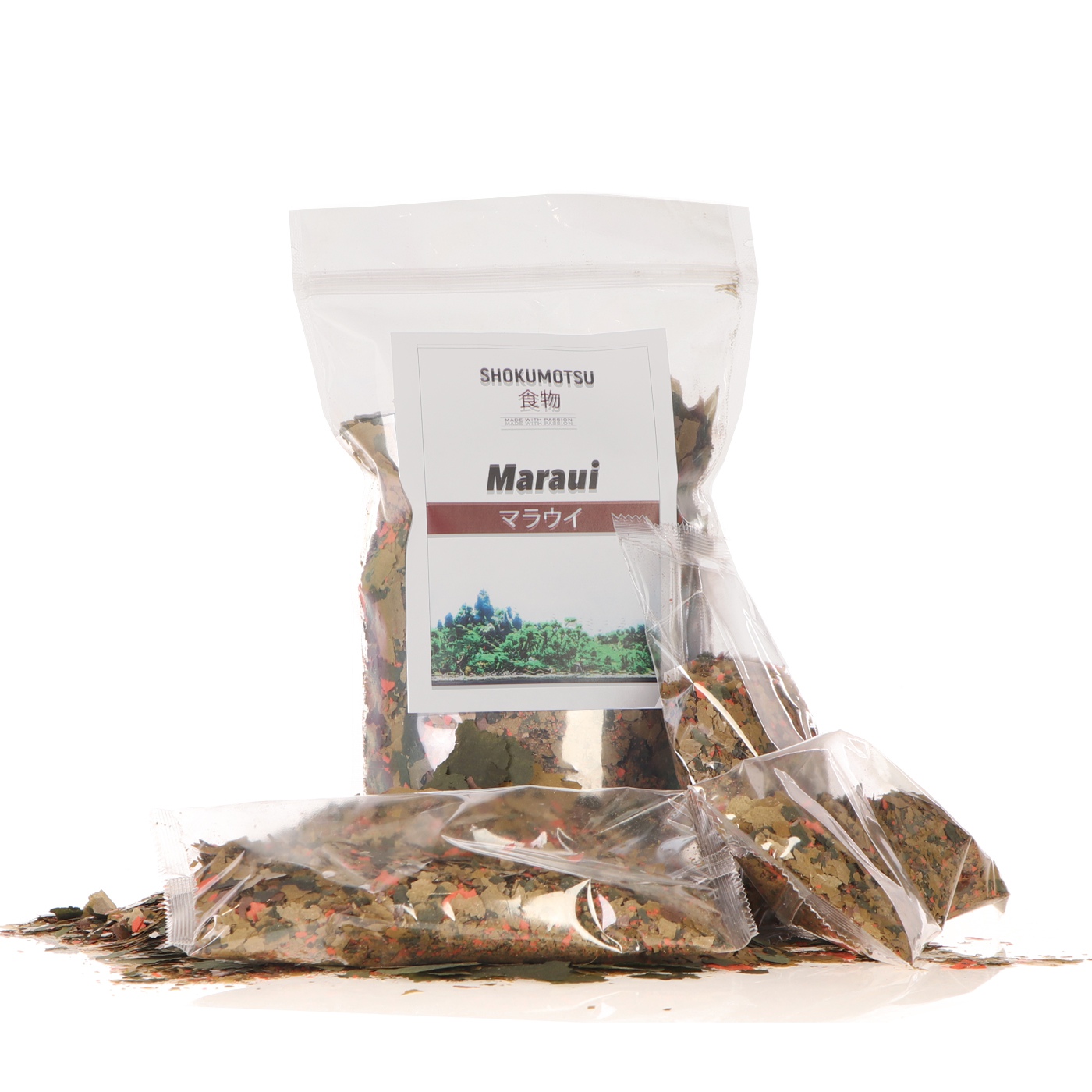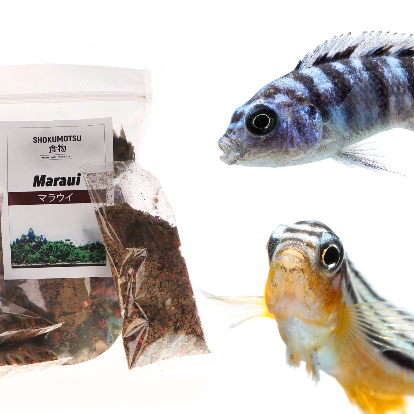 To oczywiste, że ryba żyjąca tylko na danym obszarze musie mieć żywność z tego właśnie rejonu. Dlatego, hodowla Shokumotsu regularnie pobiera szczepki glonów, roślin oraz skorupiaki i mięczaki, aby rozmnażać je w steylnych warunkach hodowlanych i produkować najlepszej klasy żywność.