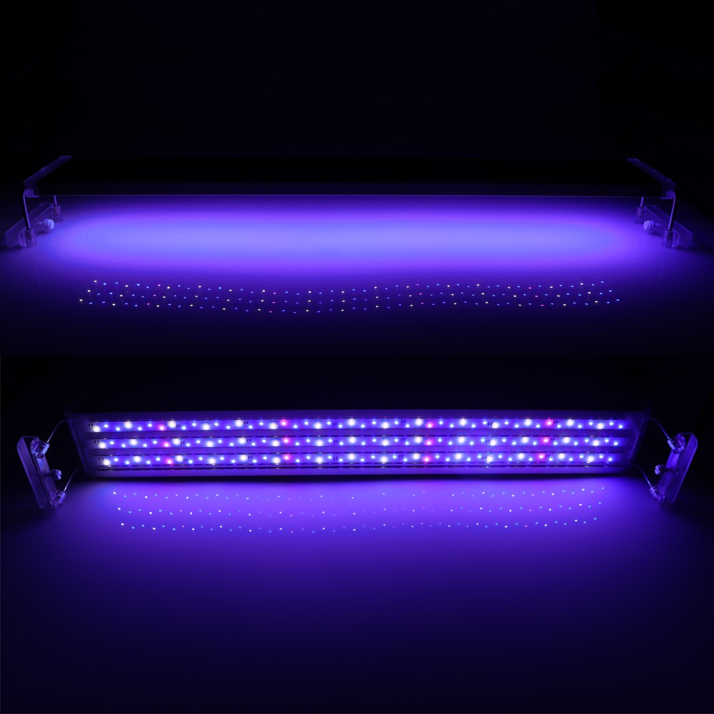 Lampa została wyposażona w kompletny mix kolorów stosowany w akwarystyce morskiej. Wśród nich znajdziemy białe zimne światło, niebieski, głęboki niebieski i fioletowo-różowy odcień.