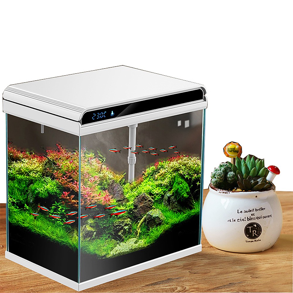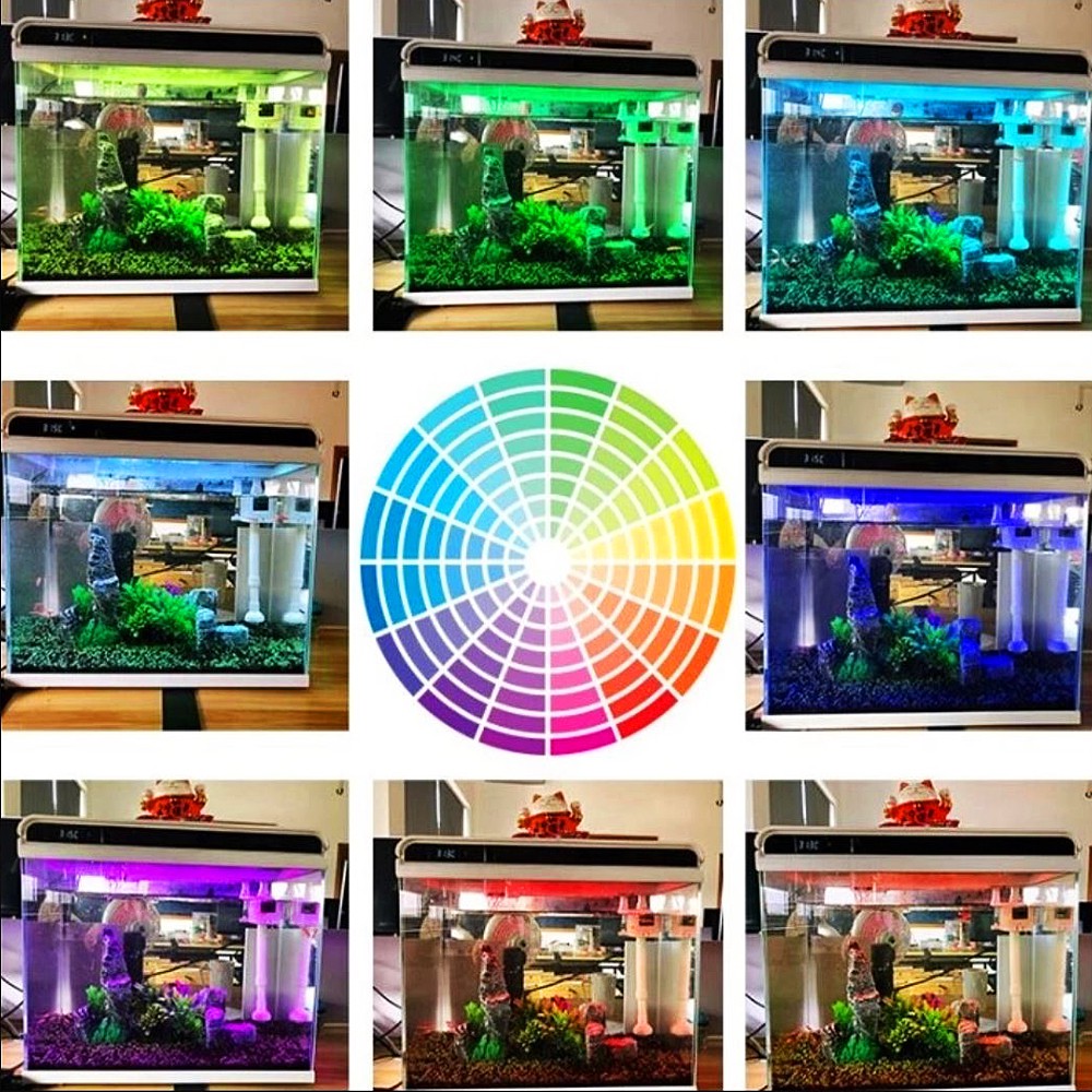 Za oświetlenie zbiornika odpowiada lampa LED o diodach RGB. Znajdująca się w pokrywie lampa doskonale oddaje barwę ryb i wpływa na fotosyntezę roślin oraz zapewnia odpowiednią przejrzystość wody. Oświetlenie posiada przełącznik dotykowy, który umożliwia sterowanie pracą lampy, czyli przełączanie w tryb nocny.