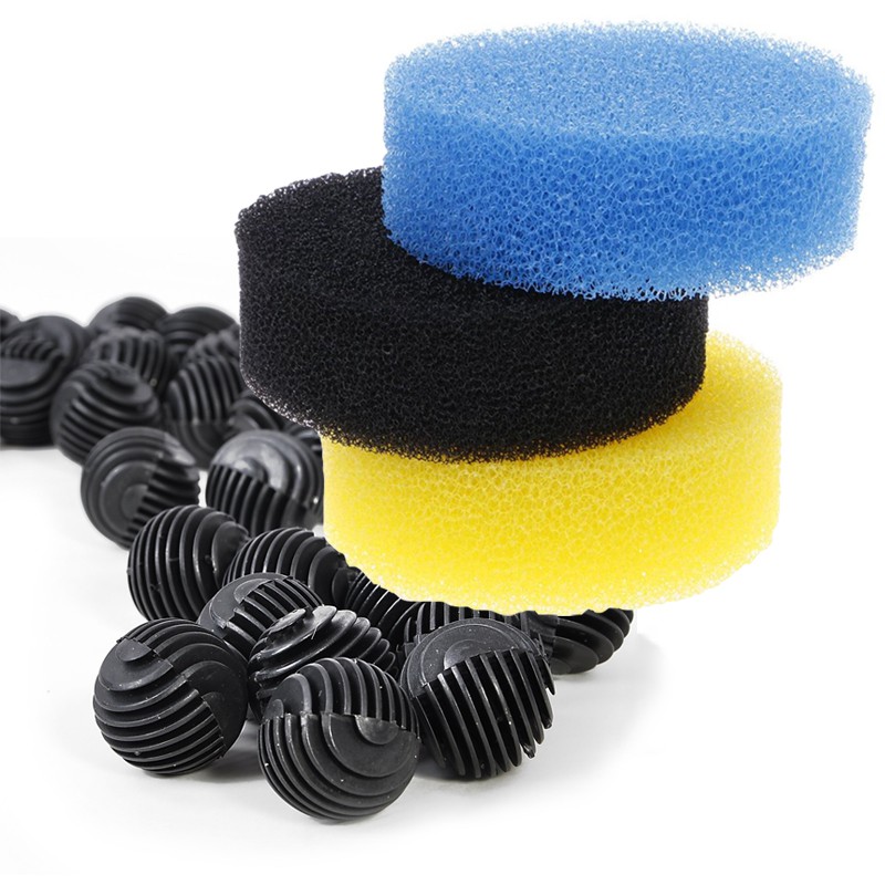 Filtr EW standardowo jest wyposażony w gąbki o trzech gradacjach odpowiadających za filtrację cząsteczek stałych oraz za rozbudowę flory bakteryjnej odpowiedzialnej za rozkład związków szkodliwych dla środowiska wodnego. Dodatkowo, posiada wkład filtracji biologicznej jakim są bioballe.