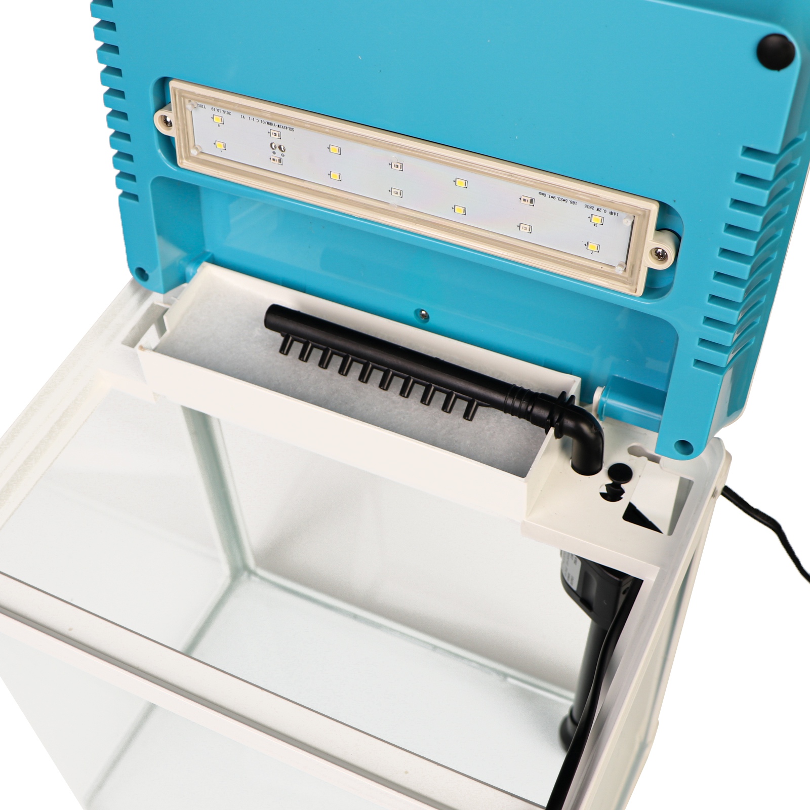Wszystkie elementy akwarium są zintegrowane. Oznacza to, że nie ma potrzeby dodatkowego montażu czy zakupu kolejnych elementów.