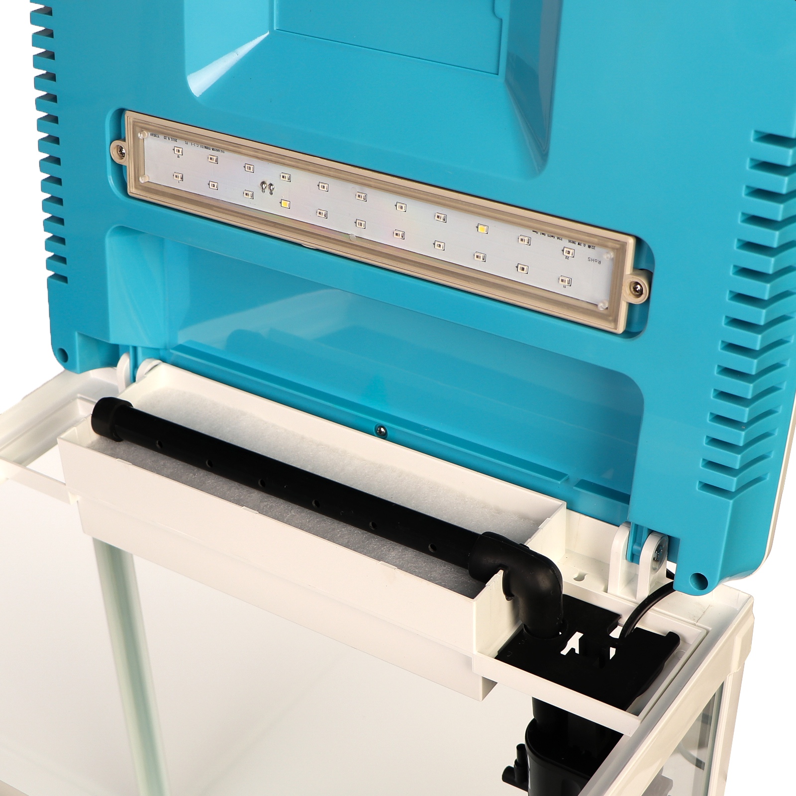 Wszystkie elementy akwarium są zintegrowane. Oznacza to, że nie ma potrzeby dodatkowego montażu czy zakupu kolejnych elementów.