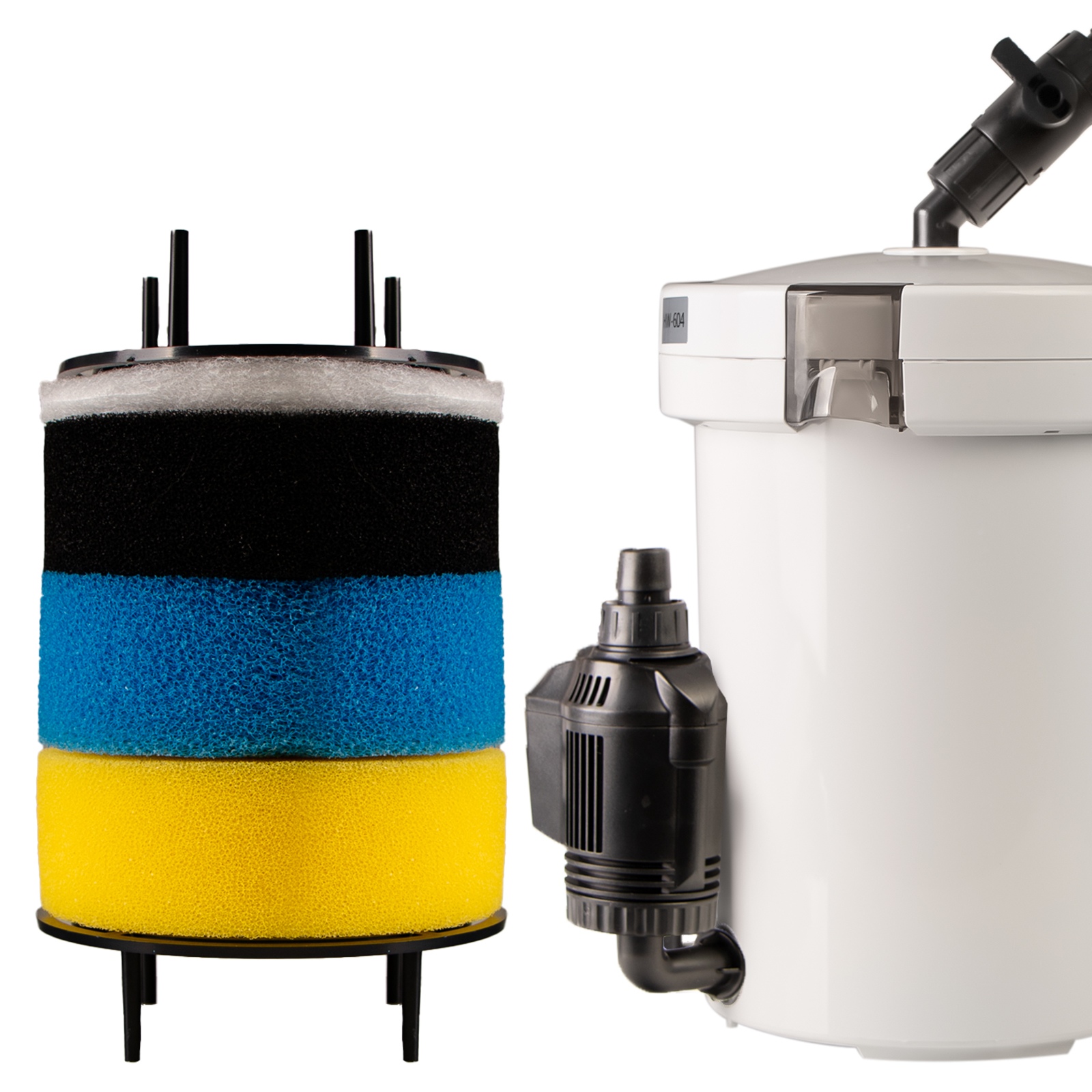 Filtr HW standardowo jest wyposażony w gąbki o trzech gradacjach odpowiadających za filtrację cząsteczek stałych oraz za rozbudowę flory bakteryjnej odpowiedzialnej za rozkład związków szkodliwych dla środowiska wodnego.