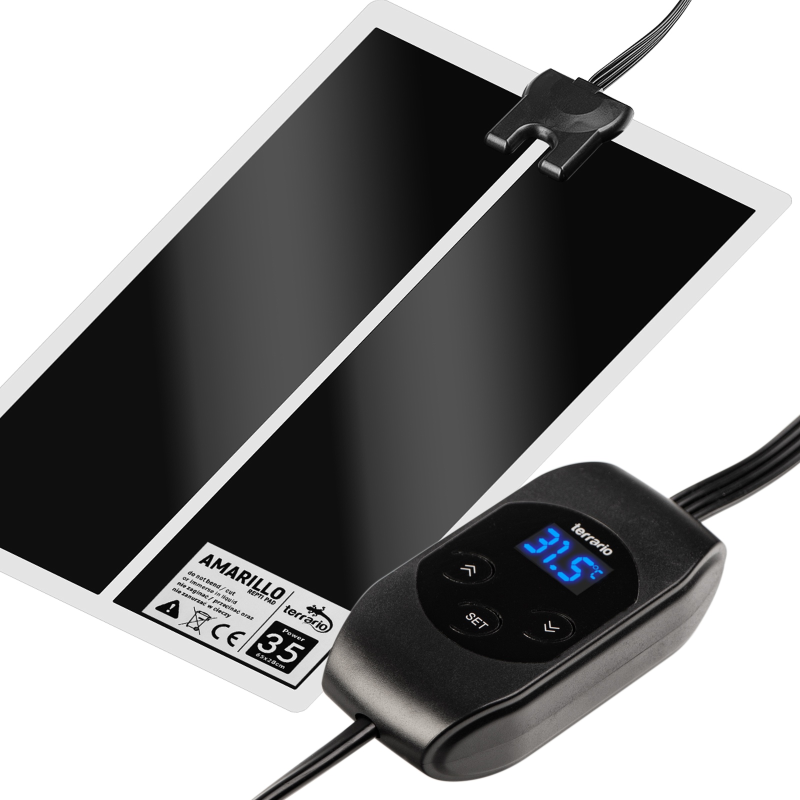- Cyfrowy Wyświetlacz Temperatury: Wyposażona w łatwy w odczycie cyfrowy wyświetlacz, mata Terrario Amarillo pozwala na bieżąco monitorować temperaturę maty grzewczej, gwarantując idealne warunki w terrarium.