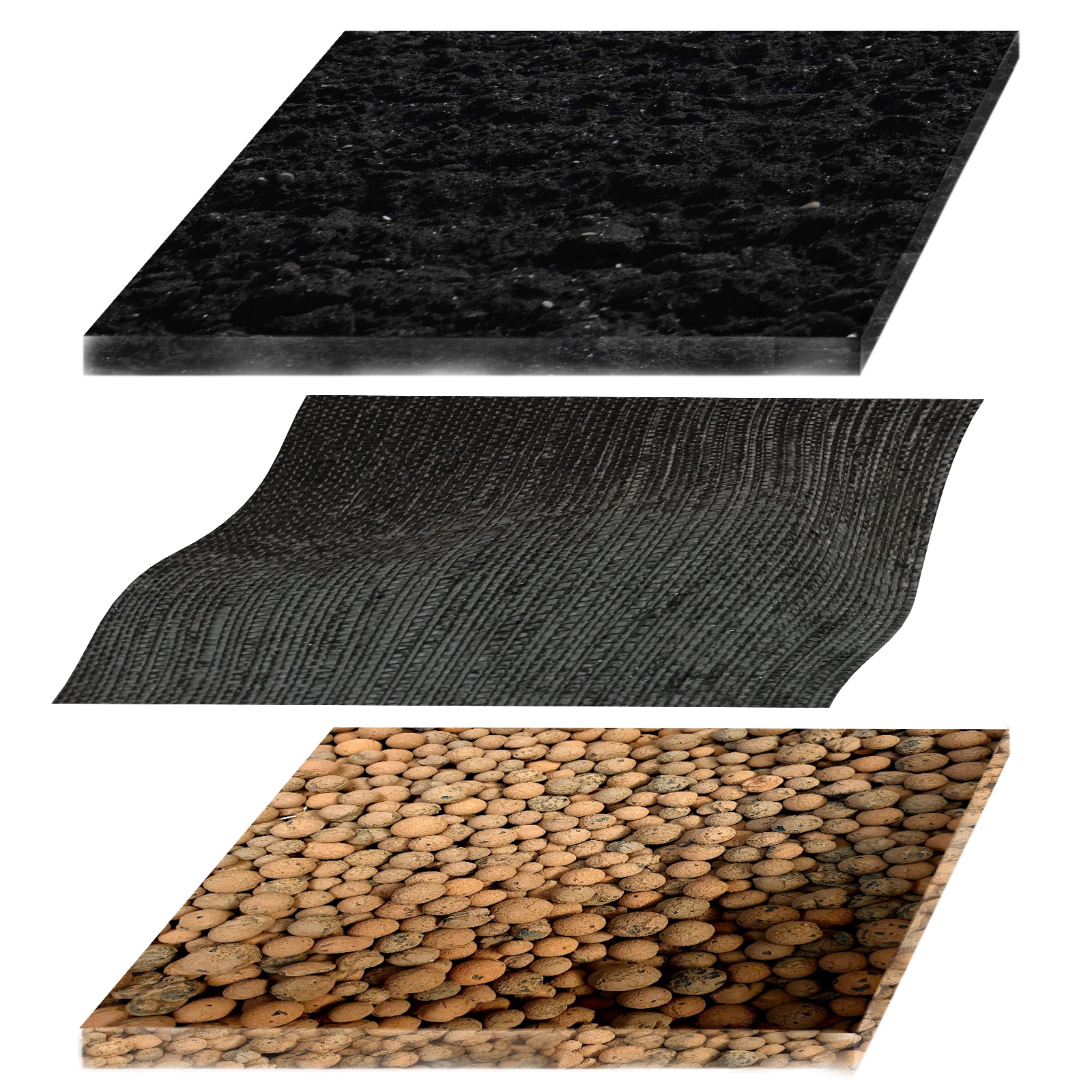 To specjalnie selekcjonowana spiekana glina. Zapewnia ona warstwę drenażową. Glina odpowiednio zmiękcza wodę i absorbuje niebezpieczne związki. Woda powoli uwalniana jest do warstwy docelowej. dodatkowo chroni przed przelaniem warstwy docelowej.