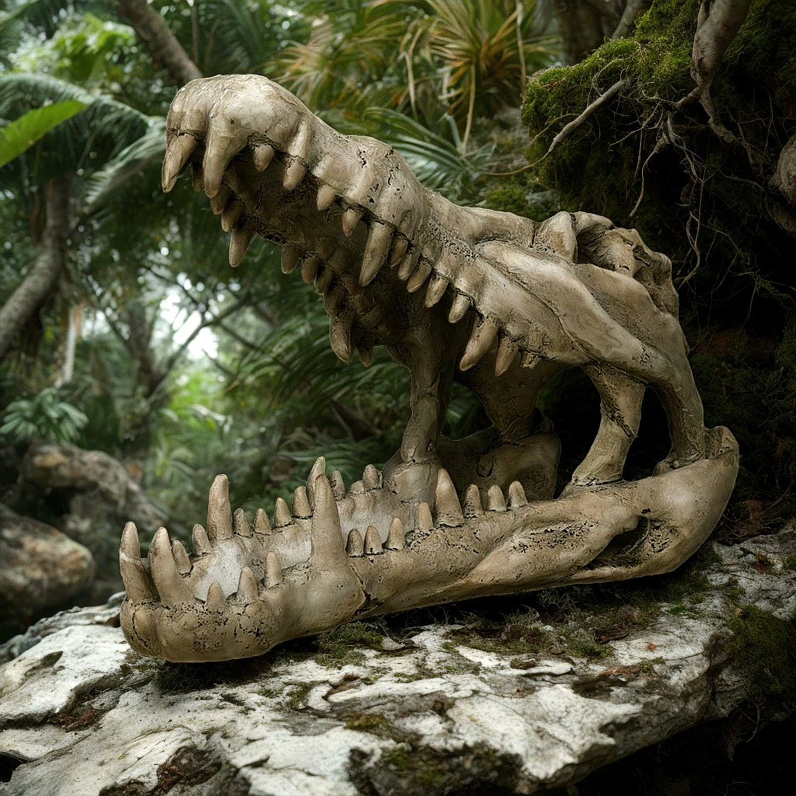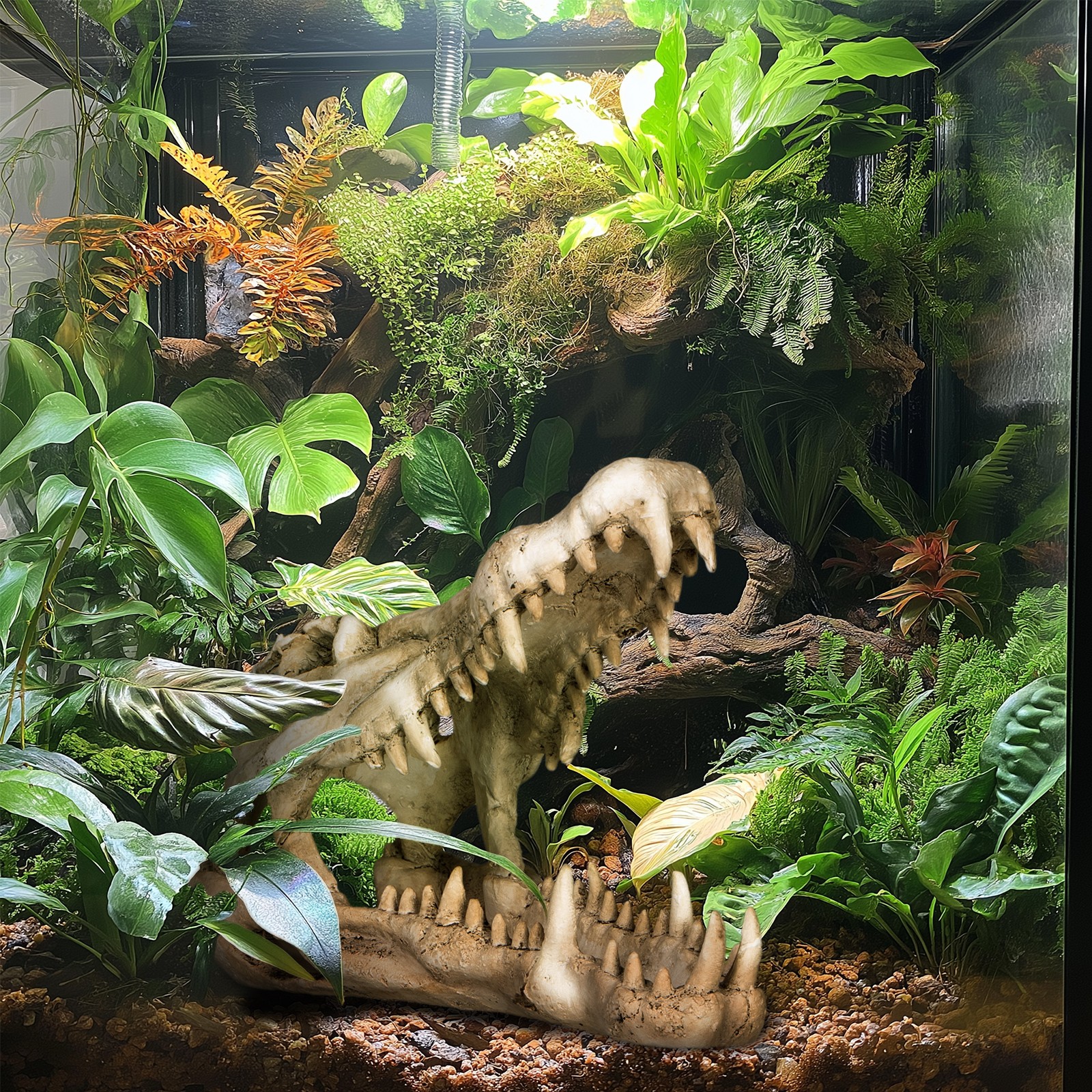 Realistyczny design: Szczegółowe odwzorowanie czaszki krokodyla z otwartymi szczękami przyciąga uwagę i dodaje terrarium dzikiego, naturalistycznego charakteru.