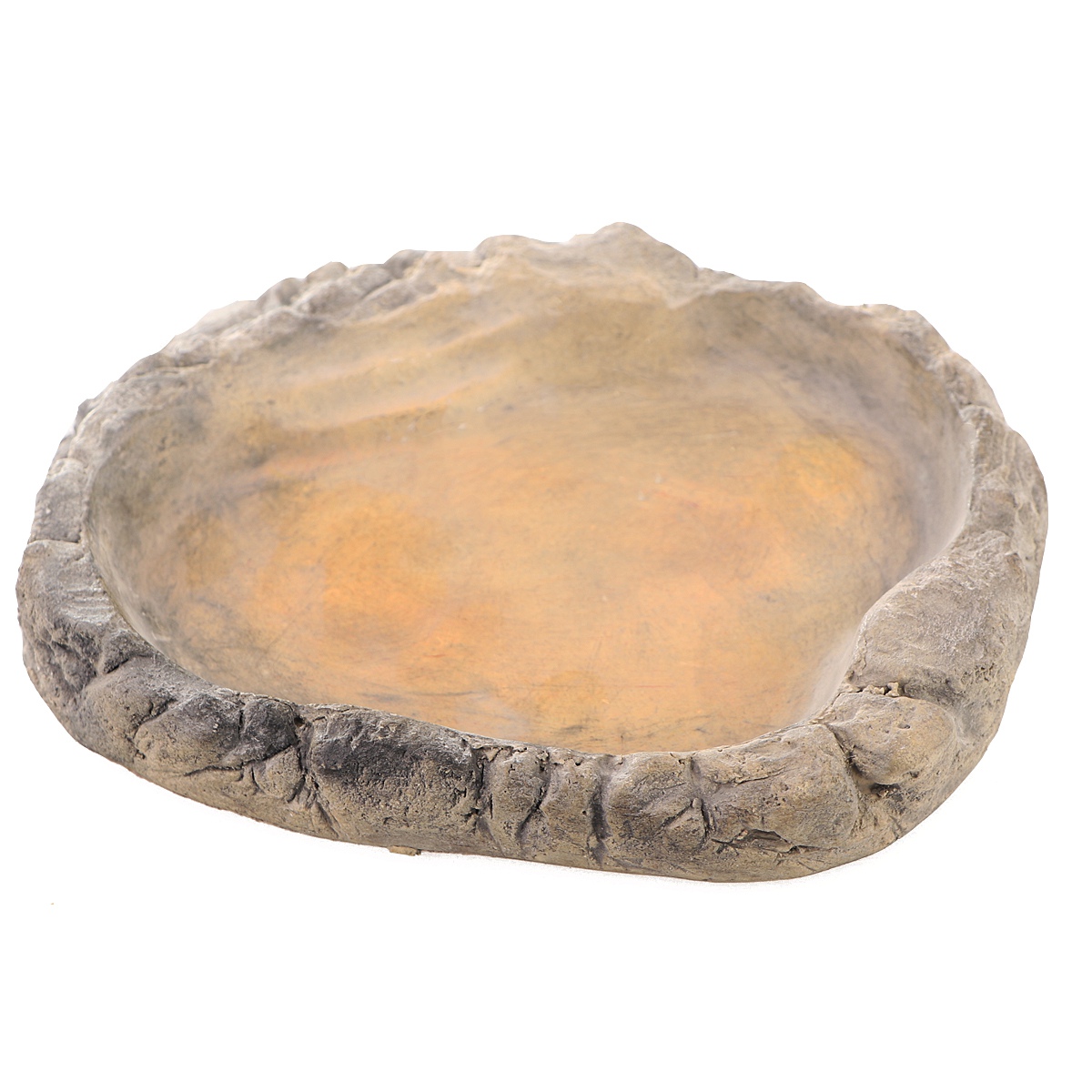 Płaska miska w skale doskonale nadaje się do podawania pokarmu roślinnego i mięsnego. Świetnie sprawdza się dla żółwi, agamy brodatej lub gekona lamparciego. Z miski możesz również stworzyć płytki basenik z wodą