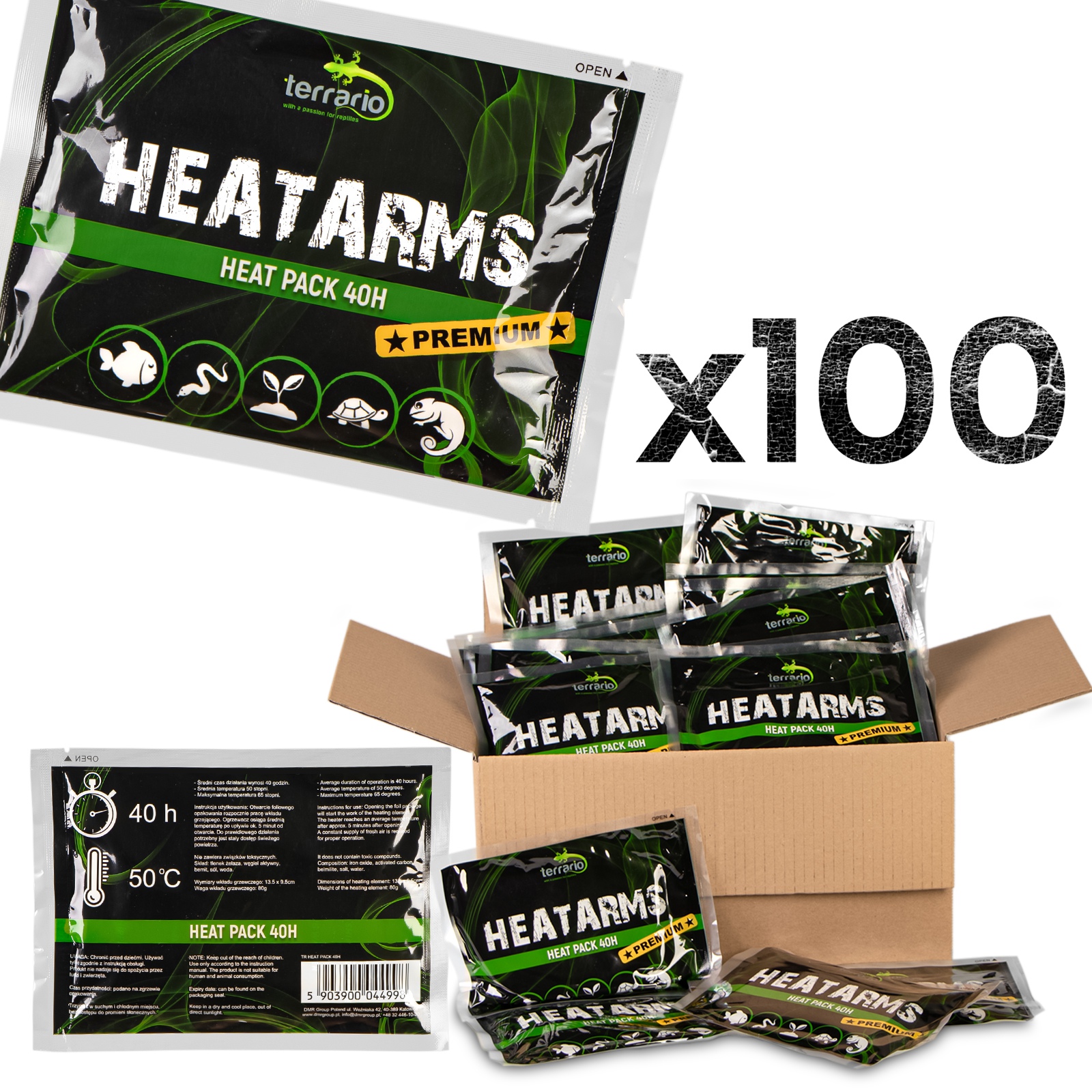 Wersja PREMIUM - ulepszona wersja standardowego Heat Pack'a. Charakteryzuje się większa stabilnością emitowanej temperatury - niemalże stała temperatura o minimalnych odchyleniach + / - 1st.C. Zestaw zawiera 100 sztuk produktu.