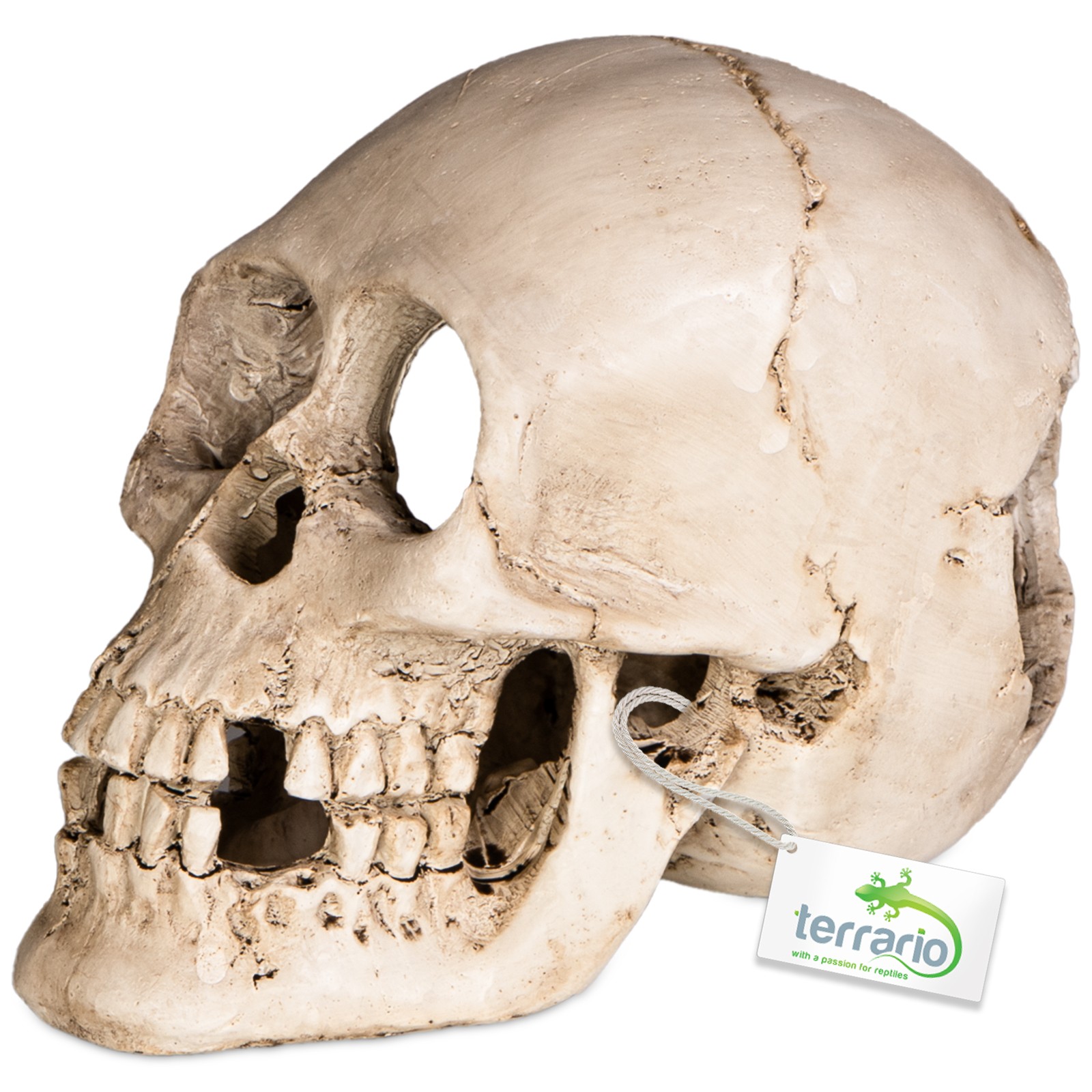 Dodaj do swojego terrarium wyjątkowy akcent z Terrario Human Skull XL. Ta ozdoba o wymiarach 15x10x9 cm odwzorowuje czaszkę ludzką z niezwykłą dbałością o szczegóły, wprowadzając do aranżacji atmosferę tajemniczości i surowego naturalizmu. Idealna jako element dekoracyjny oraz funkcjonalne schronienie dla Twoich zwierząt.