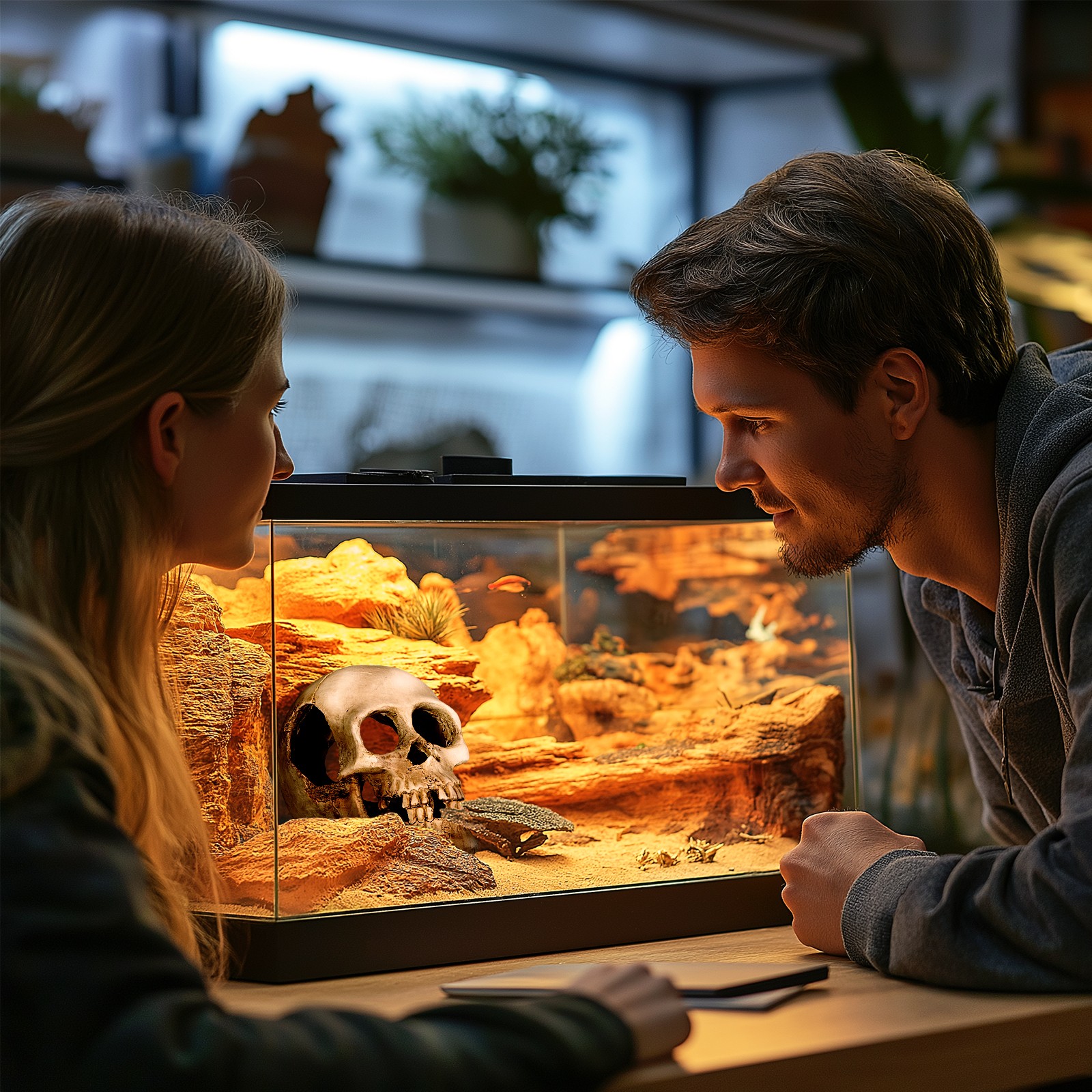 - Realistyczny design: Szczegółowo odwzorowane cechy ludzkiej czaszki nadają terrarium wyrazistego stylu.