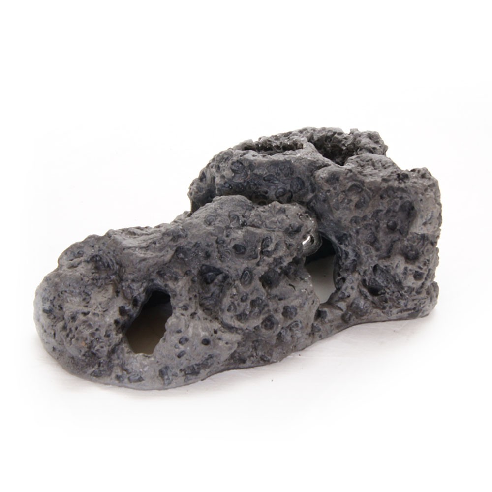 Kamień - jaskinia o unikalnym kształcie zastygłej lawy wulkanicznej, wyróżnia się nie tylko kształtem ale przede wszystkim naturalnym wyglądem, dzięki porowatej fakturze. Proces malowania dopełnia realistyczny wygląd, a akcesorium staje się ozdobą akwarium lub terrarium a nie tylko niezbędnym elementem wyposażenia.