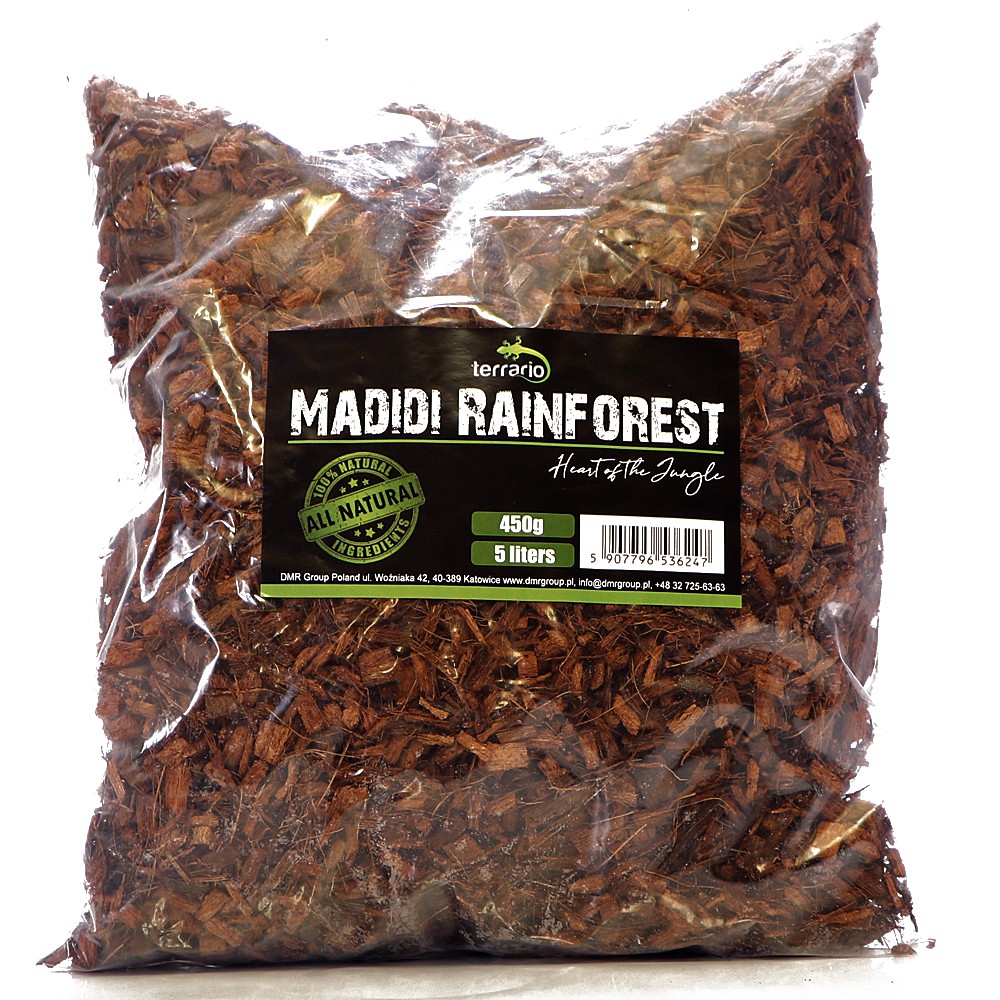 - Madidi Rainforest: Drobne kokosa. Podłoże dla średnich i małych zwierząt. (jaszczurki, płazy, ssaki) Terrarium wilgotne lub suche.