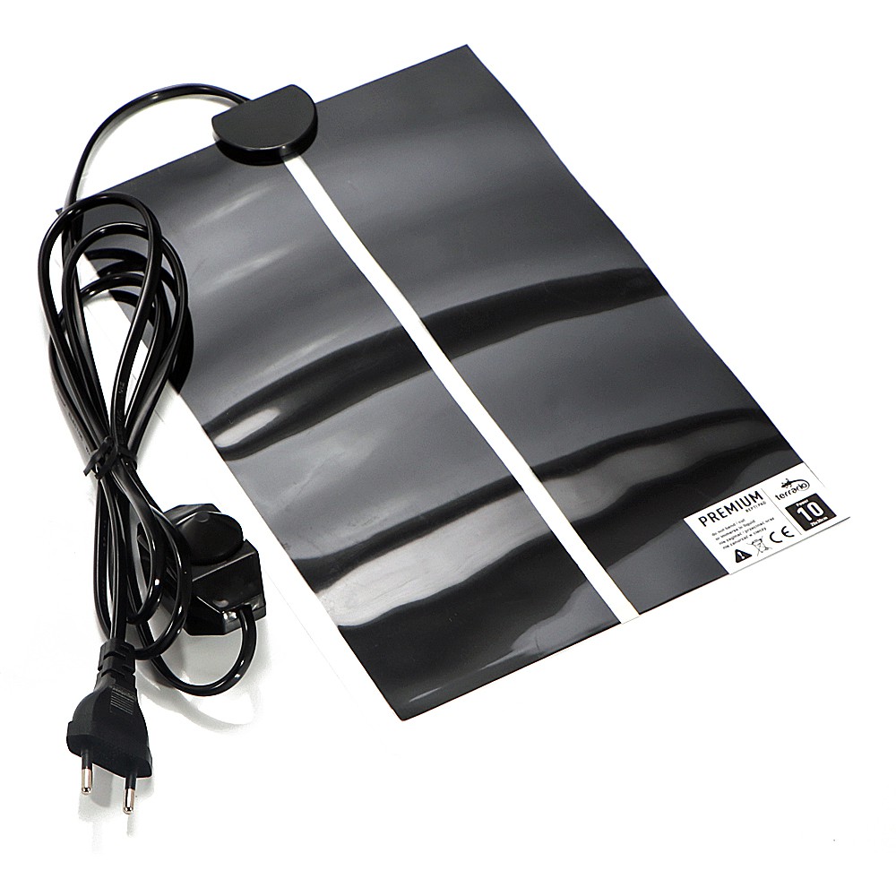 Maty grzewcze przeznaczone do terrarium charakteryzują się niezwykle dużą wydajnością. Aż 86% ciepła wygenerowanego przez matę emitowane jest w kierunku pionowym, bezpośrednio do ogrzewanego terrarium. Zamontowany na przewodzie zasilającym potencjometr pozwala regulować ilość generowanego ciepła. Dodatkową zaletą korzystania z maty grzewczej jest niezwykle niski pobór mocy.