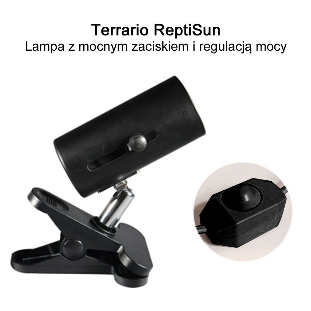 Uchwyt zaciskowy, będący częścią zestawu, nadaje się do każdego terrarium. Zachowuje bezpieczna odległość pomiędzy żarówką a zwierzęciem.