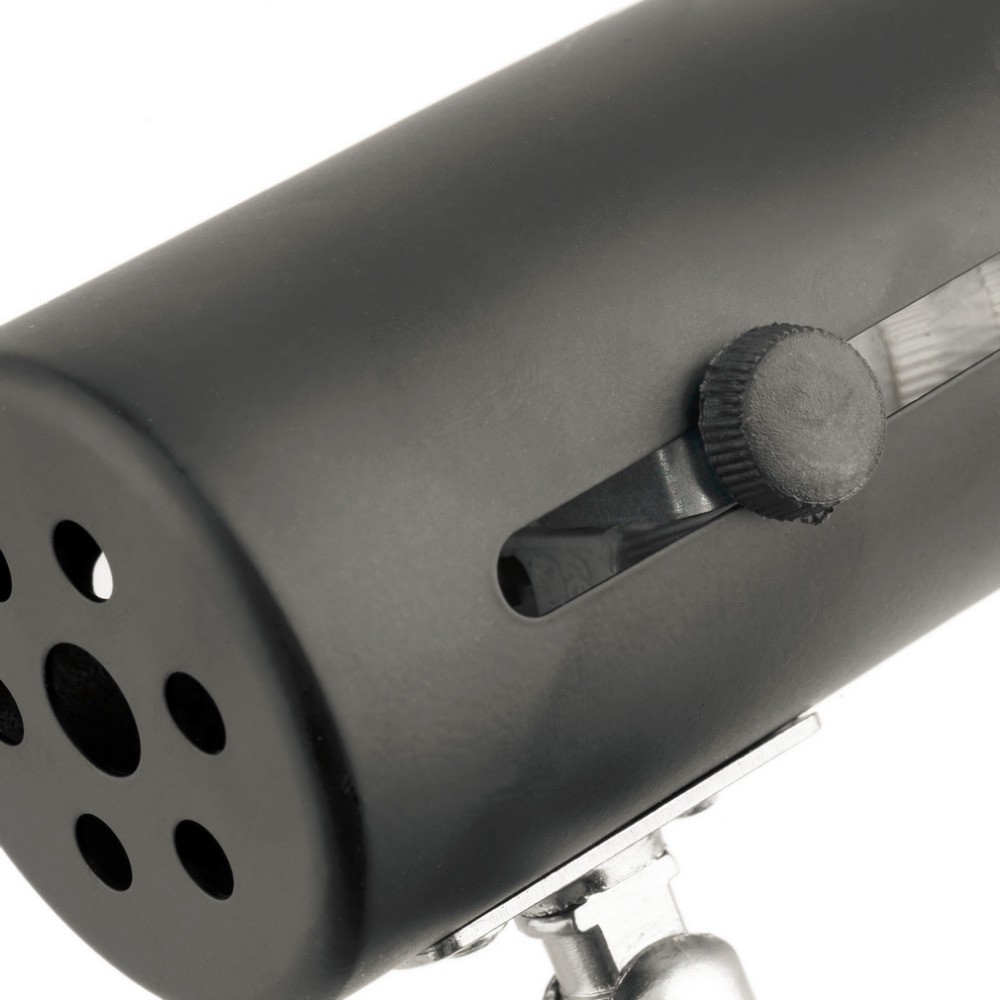 Całość wykonana jest z stali nierdzewnej wykończonej czarną matową ognioodporną powłoką. Nadaje to lampie niepowtarzalny charakter, dbając o estetykę zbiornika.