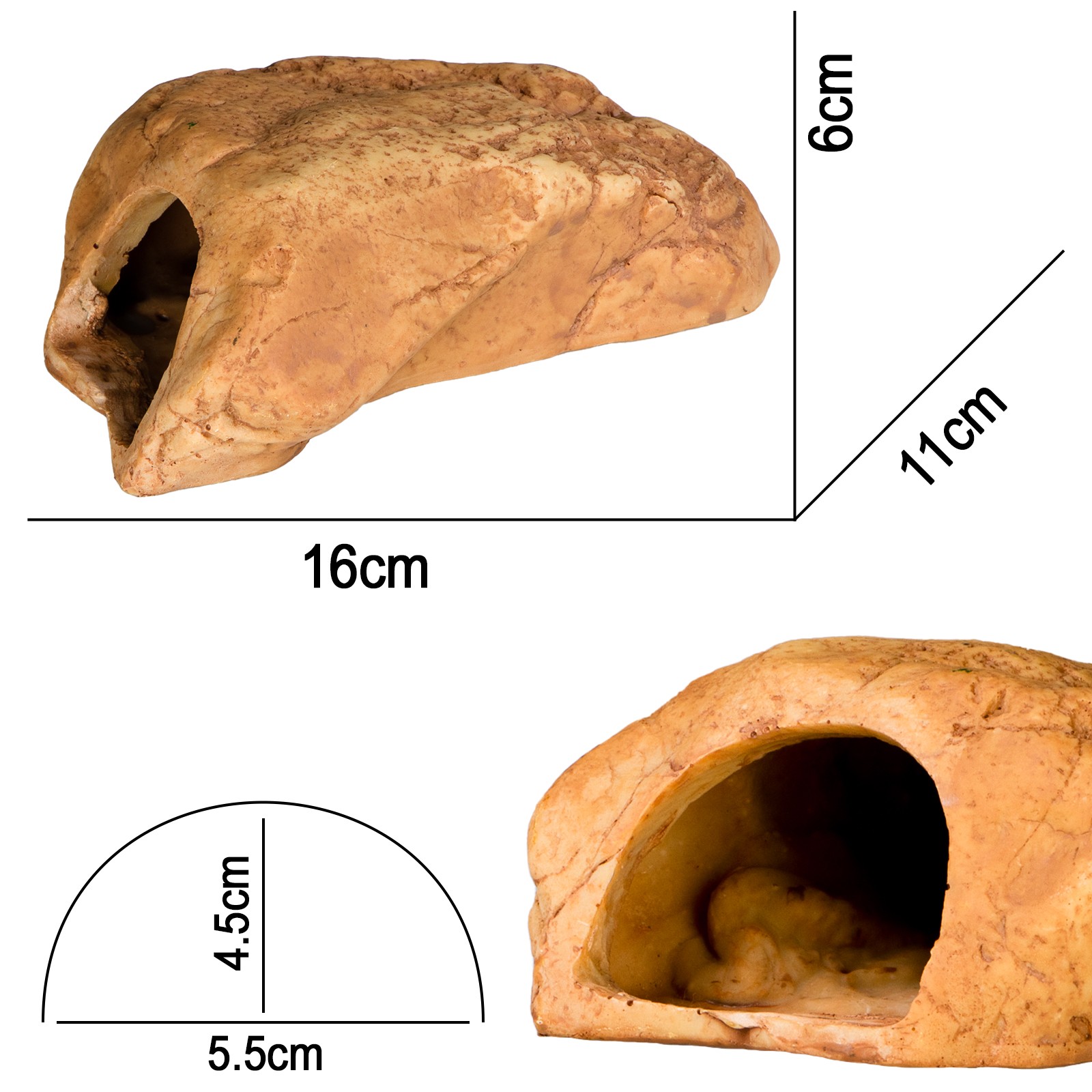 Dodaj funkcjonalny i stylowy element do swojego terrarium z Terrario Rock Shelter S. Dzięki kompaktowym wymiarom 16x11x6 cm, ta ozdoba idealnie nadaje się do małych terrariów, zapewniając Twoim zwierzętom wygodną kryjówkę oraz naturalistyczny wygląd otoczenia. Realistycznie odwzorowana struktura skały podkreśla estetykę i tworzy poczucie autentycznego środowiska dla gadów, płazów czy innych małych zwierząt.