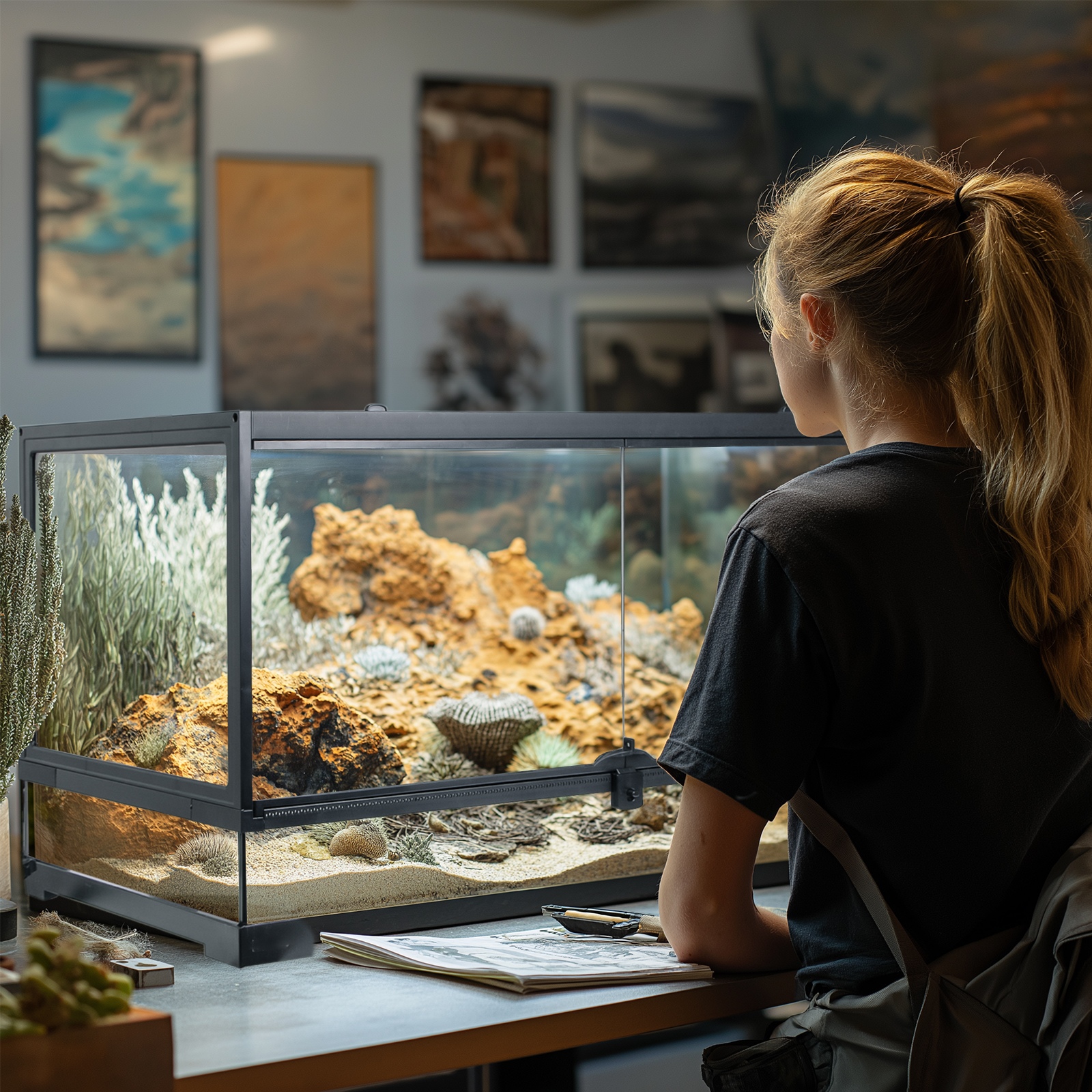 Terrario Santuario Natural 40 to nie tylko funkcjonalność i bezpieczeństwo, ale także elegancki design, który wzbogaci każde wnętrze. Szeroka, niska konstrukcja jest idealna dla pustynnych gadów, które potrzebują przestrzeni na szerokości, a nie wysokości. Dzięki trwałym materiałom i przemyślanej konstrukcji, terrarium to stanowi doskonały wybór dla hodowców poszukujących wysokiej jakości rozwiązania.