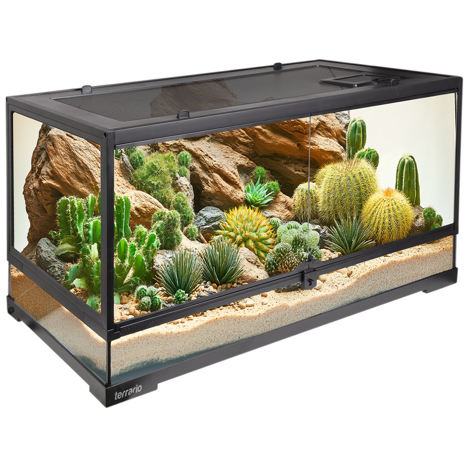 - Dodatkowa wentylacja pod drzwiczkami: zapewnia idealny przepływ powietrza na całej szerokości, co jest kluczowe dla gatunków pochodzących z suchego, pustynnego klimatu.