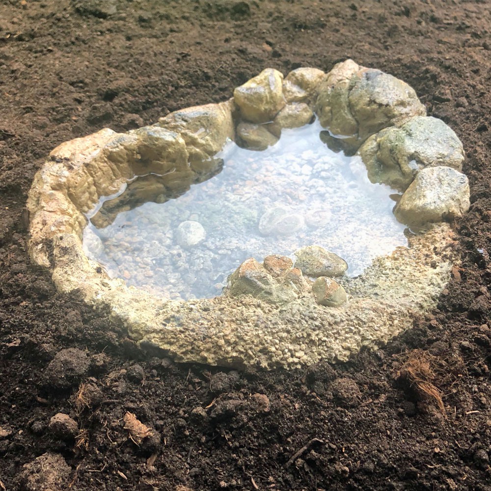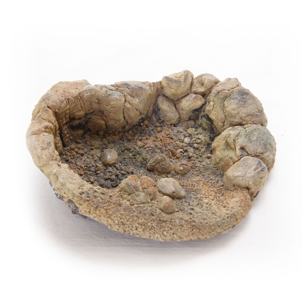 Czy coś może naturalniej wyglądać? Prawdziwe zagłębienie w ziemi to doskonały pomysł na miskę. Świetnie sprawdzi się jako basenik do kąpieli dla małych gadów i płazów. Sprawdzi się jako miska na wodę do picia oraz miseczka na pokarm.