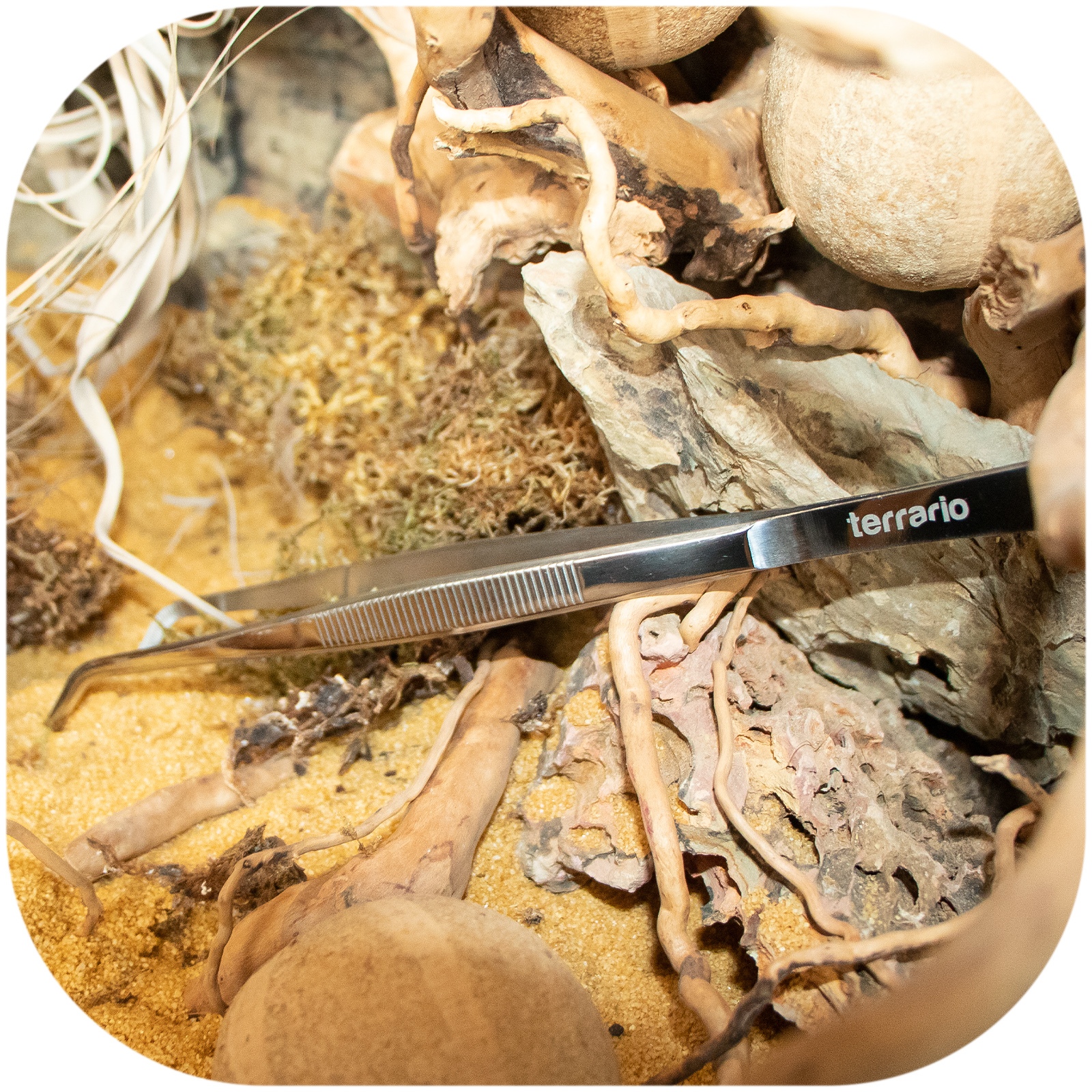 Ale nie tylko jest przydatna gdy masz w terrarium same straszydła. Pęseta terrarystyczna powinna być używana w każdym terrarium, żeby najzwyczajniej nie płoszyć ich mieszkańców. Powiedzmy sobie szczerze: Twoja ręka dla niektórych zwierzątek jest okrutnie straszna. Przypomina wielkiego pająka, który chce coś zjeść. Korzystaj więc z pęsety do każdej pracy w zamieszkałym przez zwierzątka terrarium.