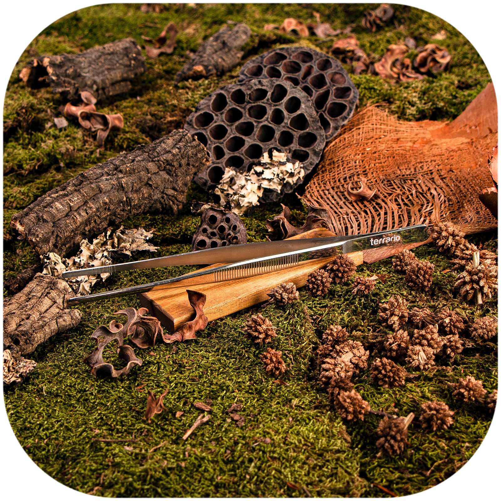 Ale nie tylko jest przydatna gdy masz w terrarium same straszydła. Pęseta terrarystyczna powinna być używana w każdym terrarium, żeby najzwyczajniej nie płoszyć ich mieszkańców. Powiedzmy sobie szczerze: Twoja ręka dla niektórych zwierzątek jest okrutnie straszna. Przypomina wielkiego pająka, który chce coś zjeść. Korzystaj więc z pęsety do każdej pracy w zamieszkałym przez zwierzątka terrarium.