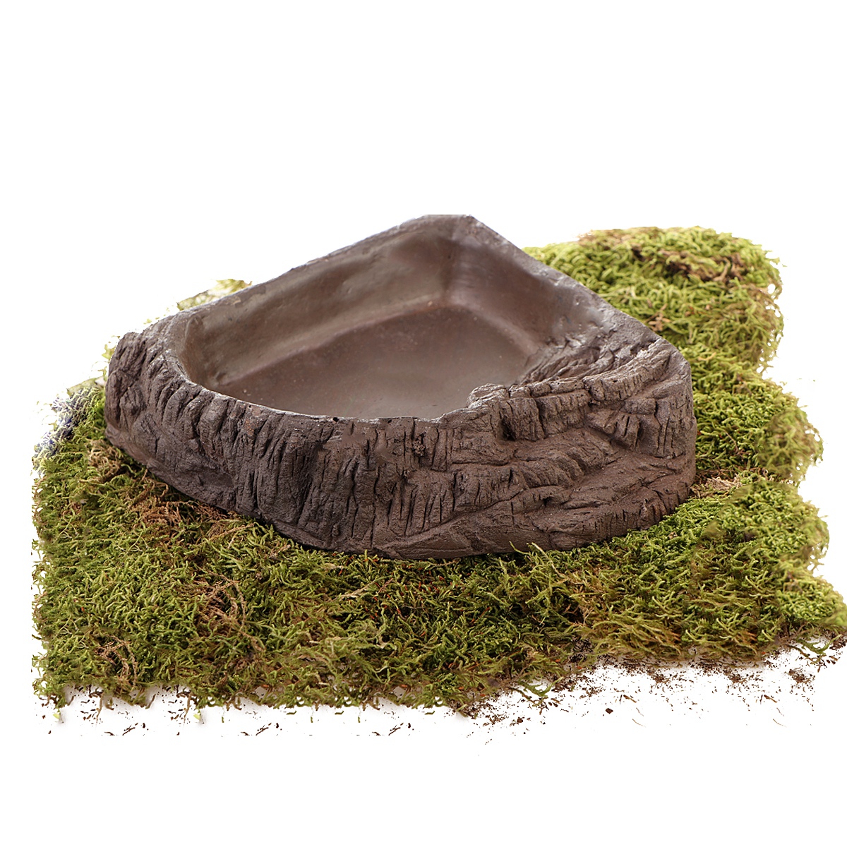 Głęboka miska to doskonałe miejsce do kąpieli dla żab i kumaków. Sprawdzi się też jako naczynie na wodę lub pokarm. "Prawie" trójkątny kształt pozwoli Ci zaoszczędzić miejsce w terrarium.
