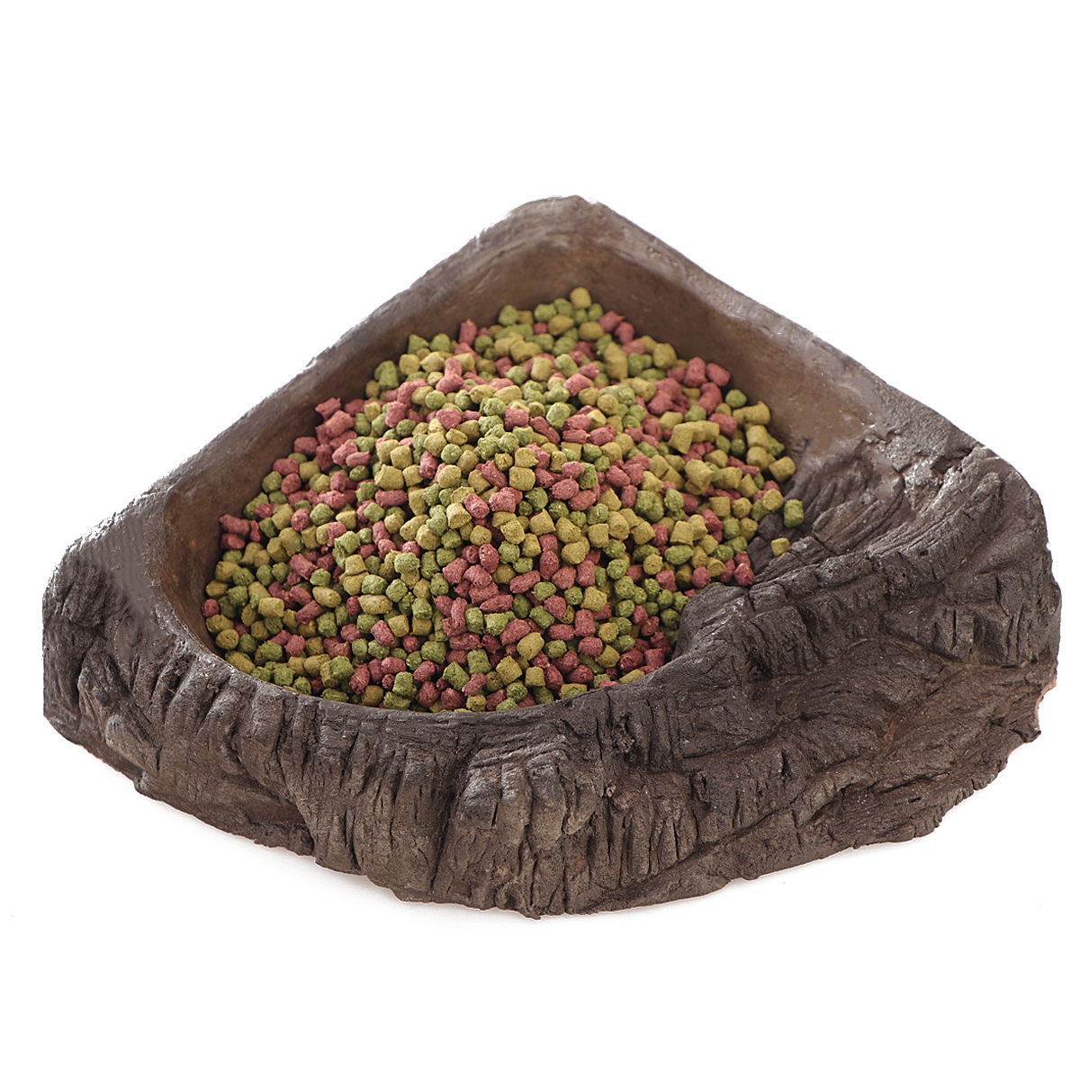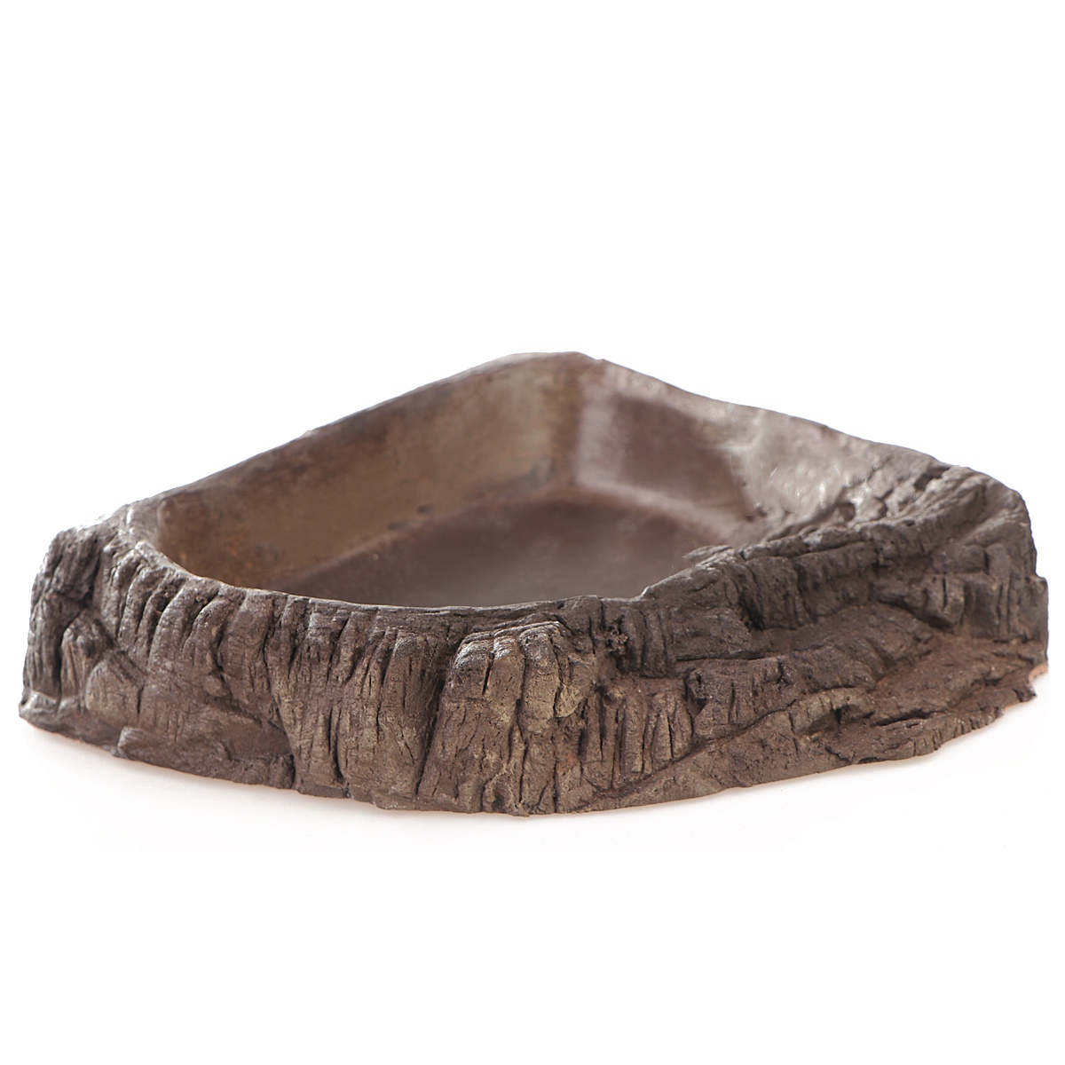 Głęboka miska to doskonałe miejsce do kąpieli dla żab i kumaków. Sprawdzi się też jako naczynie na wodę lub pokarm. "Prawie" trójkątny kształt pozwoli Ci zaoszczędzić miejsce w terrarium.