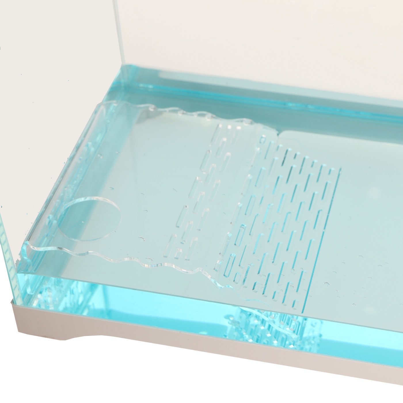 Wyspa jest bardzo estetycznie wycięta. Wykonanie z akrylu sprawia, że staje się niewidoczna w zbiorniku.