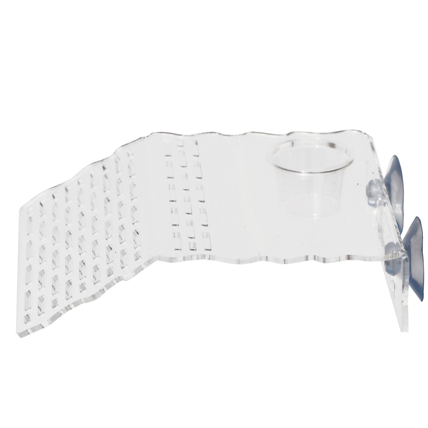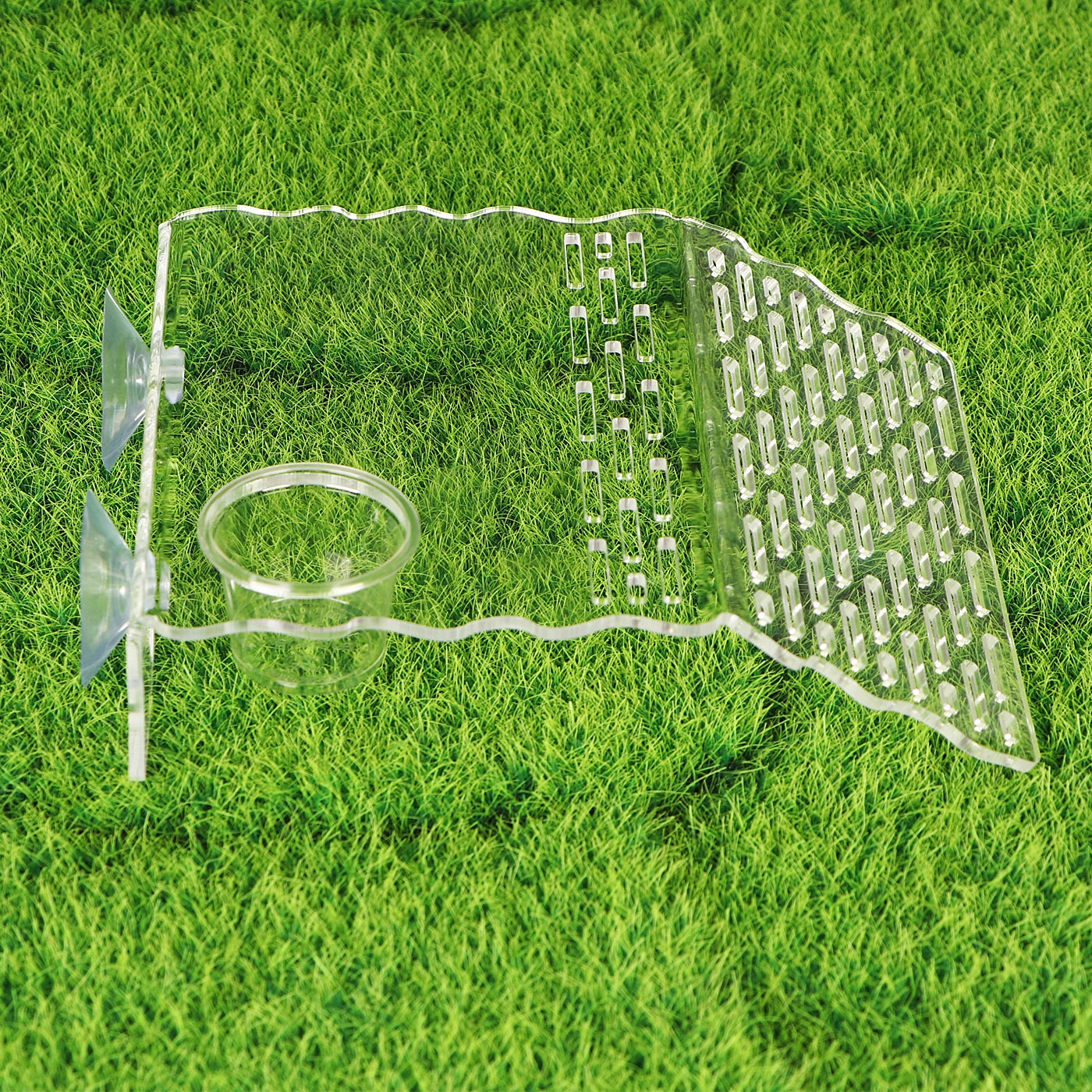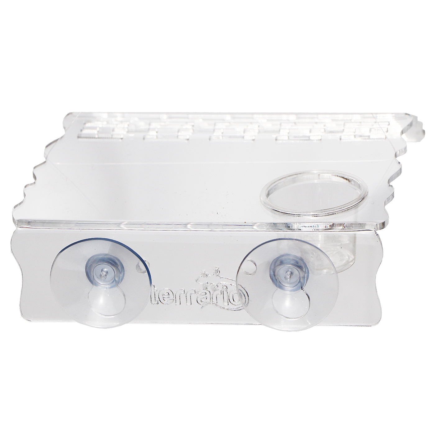 Wyspa ma wycięcie, w którym możesz zamontować miskę na pokarm żywy lub suchy. Wraz z wyspą otrzymasz dwie takie miseczki o różnej pojemności.