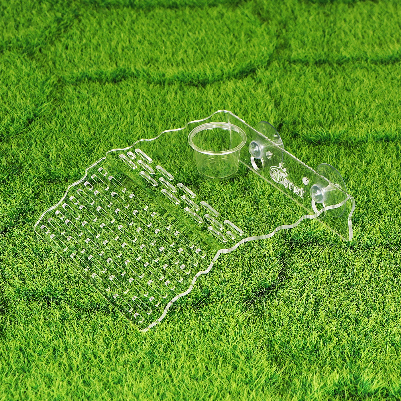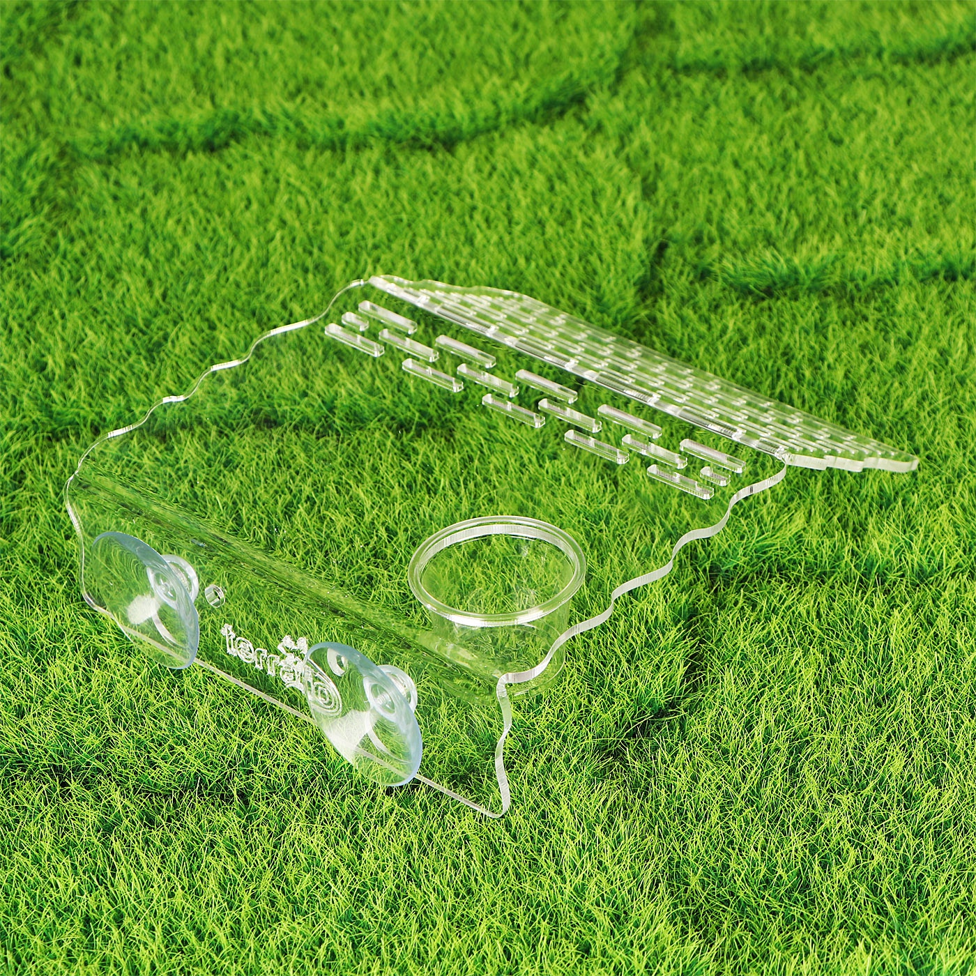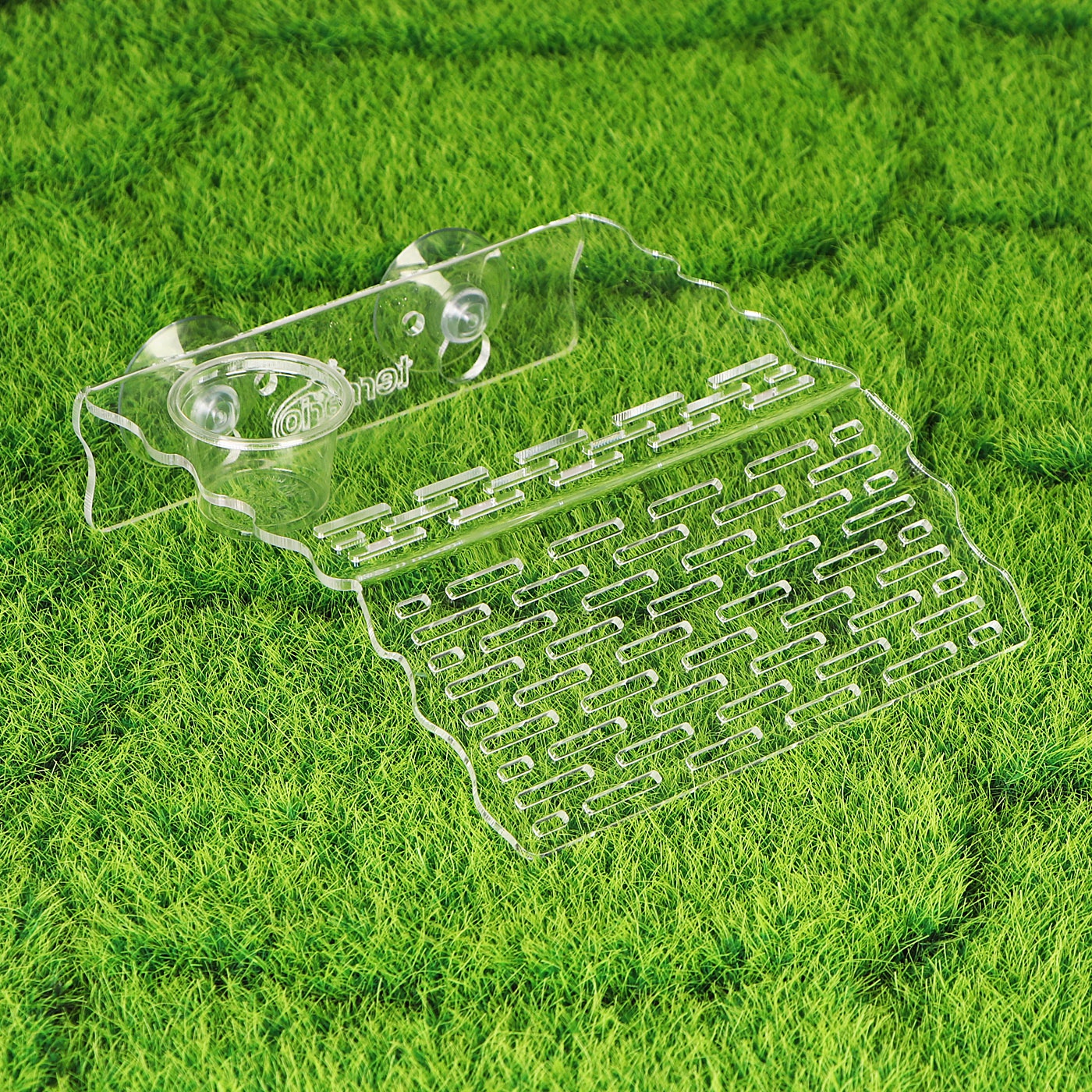Wyspa ma wycięcie, w którym możesz zamontować miskę na pokarm żywy lub suchy. Wraz z wyspą otrzymasz dwie takie miseczki o różnej pojemności.