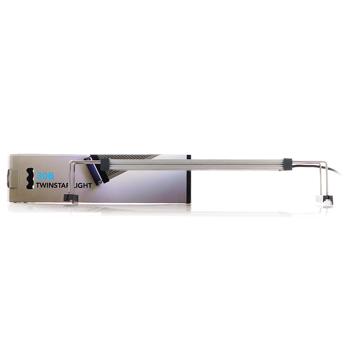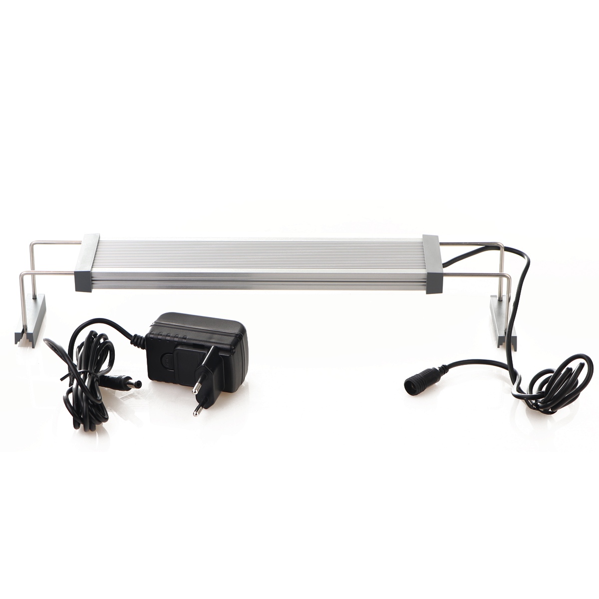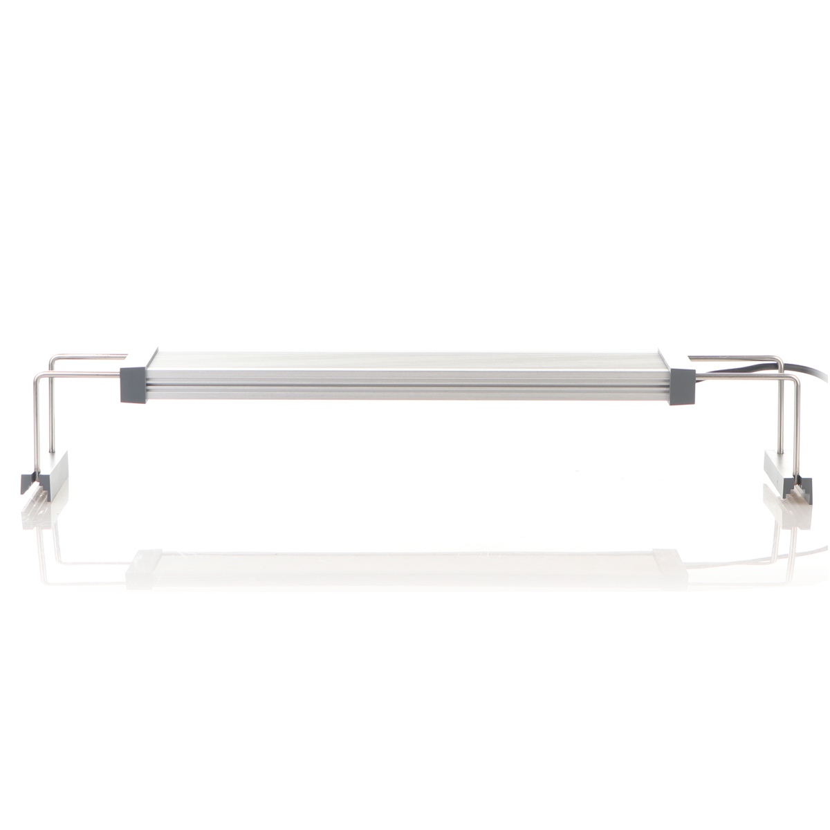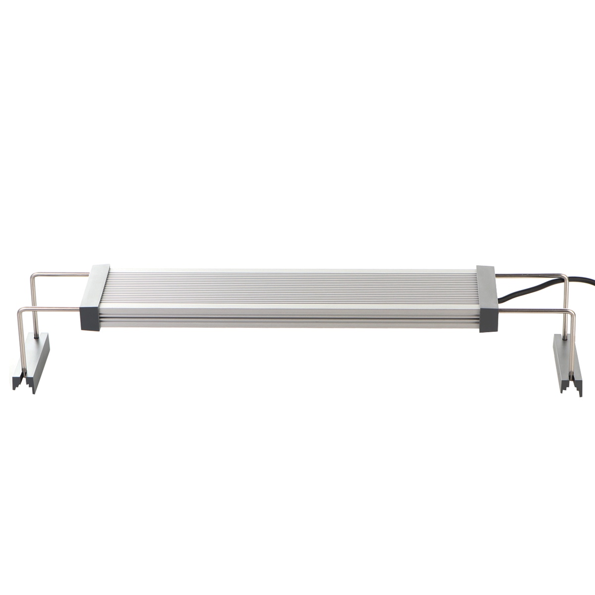Lampę stawiamy na krawędziach akwarium. Rozsuwane nóżki umożliwiają zainstalowanie lampy na akwarium od 25 do 40cm szerokości. Uchwyty na szkło również są uniwersalne i pasują do grubości szkła od 4mm do 10mm.