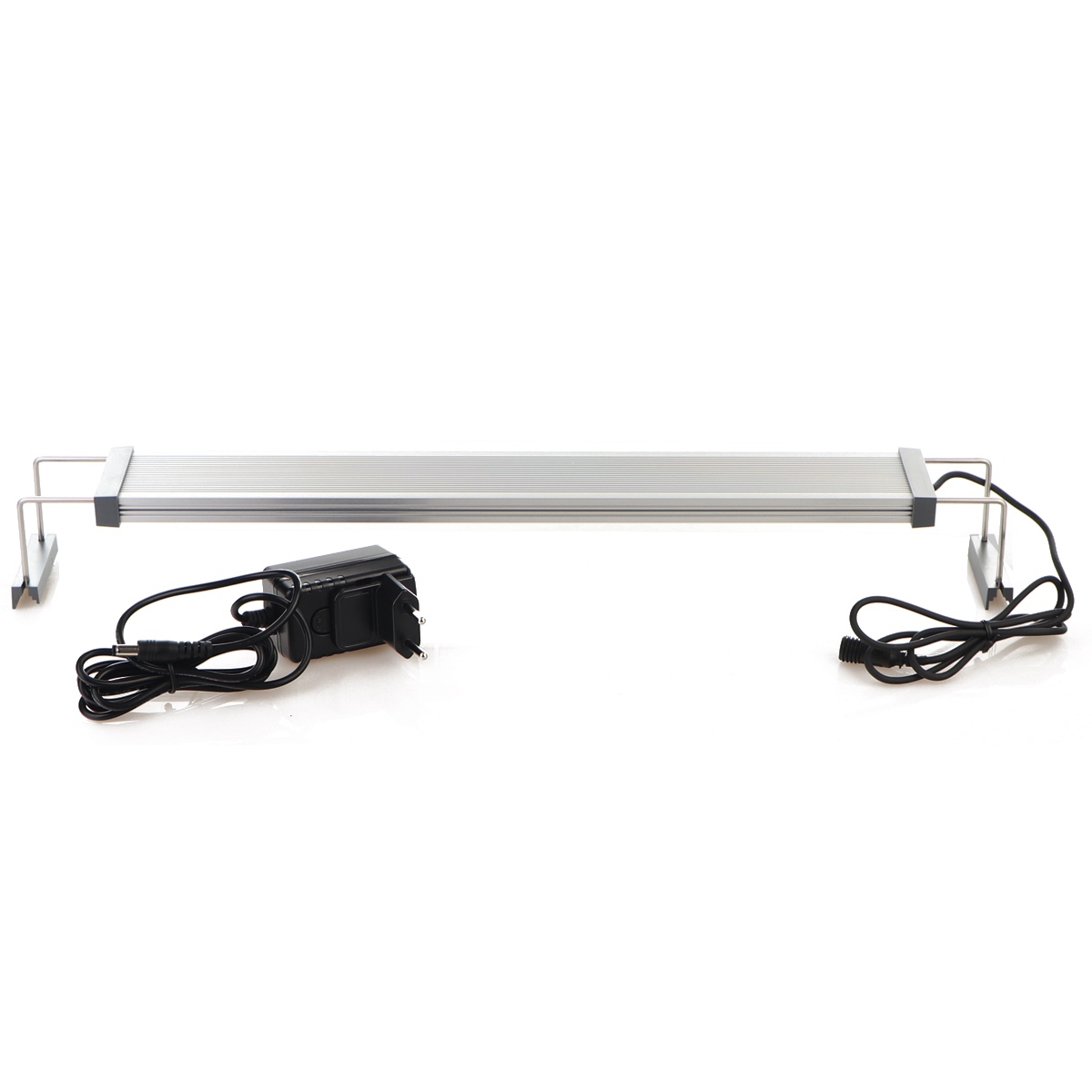 Lampę stawiamy na krawędziach akwarium. Rozsuwane nóżki umożliwiają zainstalowanie lampy na akwarium od 40 do 55cm szerokości. Uchwyty na szkło również są uniwersalne i pasują do grubości szkła od 4mm do 10mm.