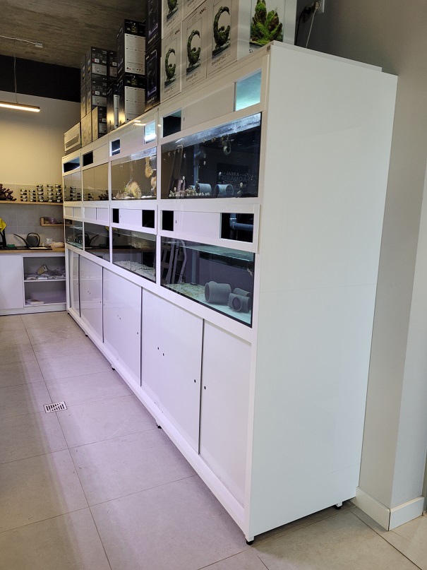 Obicia klejone, plexi biała w połysku. Posiada zasuwy dolne DIBOND.
