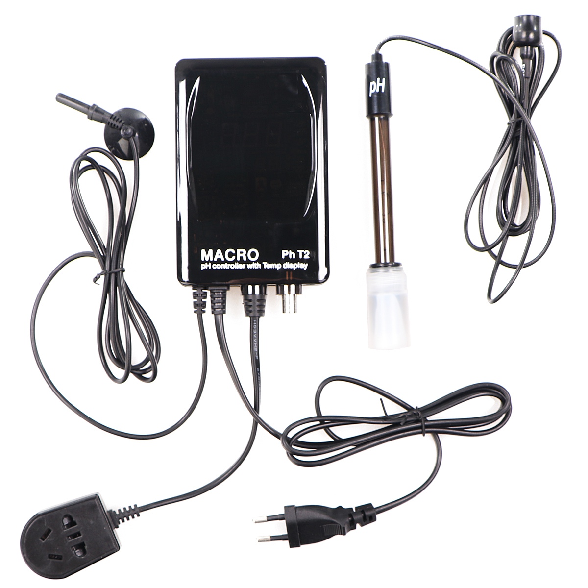 Komputer pH Macro Aqua v2 dokonuje pomiarów za pomocą niezwykle precyzyjnej sondy. Jest to możliwe dzięki automatycznej kalibracji w buforach o wartości pH 4 oraz 7. Dzięki temu wskazania sondy mają zakres 0-14pH oraz niesamowicie mały margines odchyłu wskazań rzędu 0.1%. Komputer samodzielnie może utrzymywać zadaną wartość pH z zakresu 3,5-10.