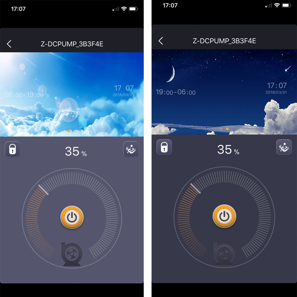 Przepływ pompy można w pełni i bezstopniowo regulować za pomocą smartfona lub tabletu po pobraniu aplikacji aqua horizon. Łatwo i szybko można zmniejszyć przepływ wody w trakcie karmienia, podawania suplementów czy prac pielęgnacyjnych, dodatkowo aplikacja HORIZON daje możliwość ustawienia trybów pracy dzień / noc oraz posiada funkcję falowania z redukcją fali od 99% do 0%. Podobnie jest z stałą wydajnością pompy, którą można bezstopniowo programować od 0 do 100%.