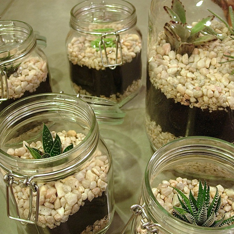 W mini ogrodach w szkle żwirek doskonale sprawdza się jako drenaż wody. Spełnia również funkcje dekoracyjną. Układając żwirek na wierzchu wygląda niezwykle zjawiskowo i naturalnie. Dodatkowo żwirek można zmieszać z innego rodzaju podłożem, zwiększając jego objętość i poprawiając wymianę wody.
